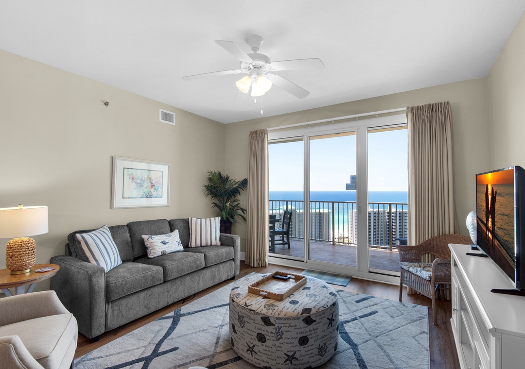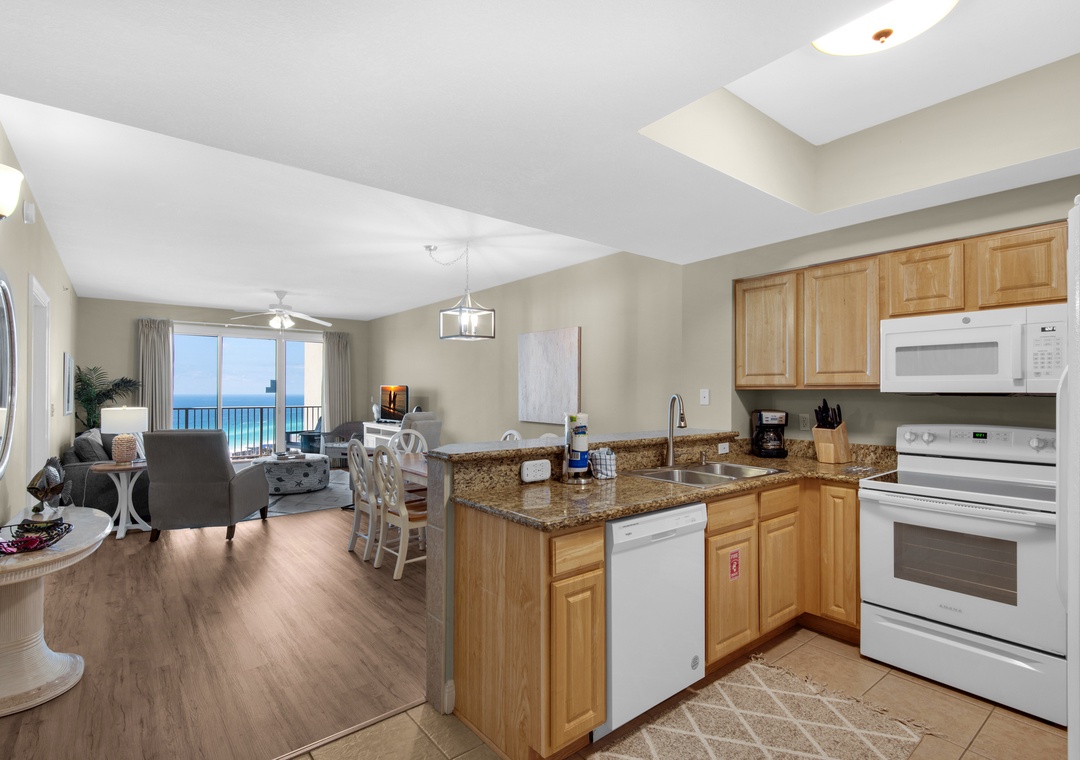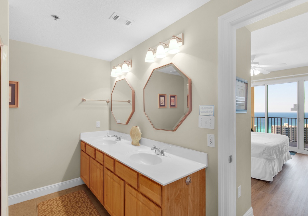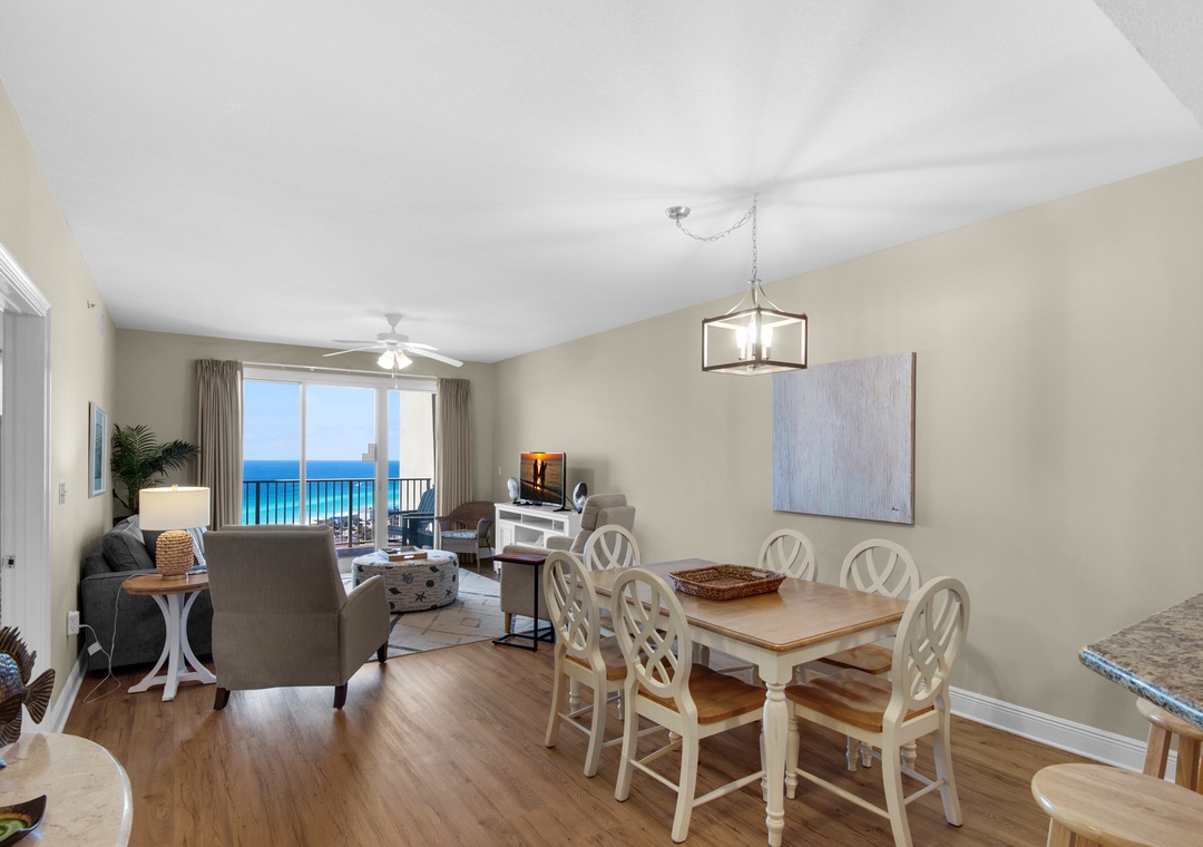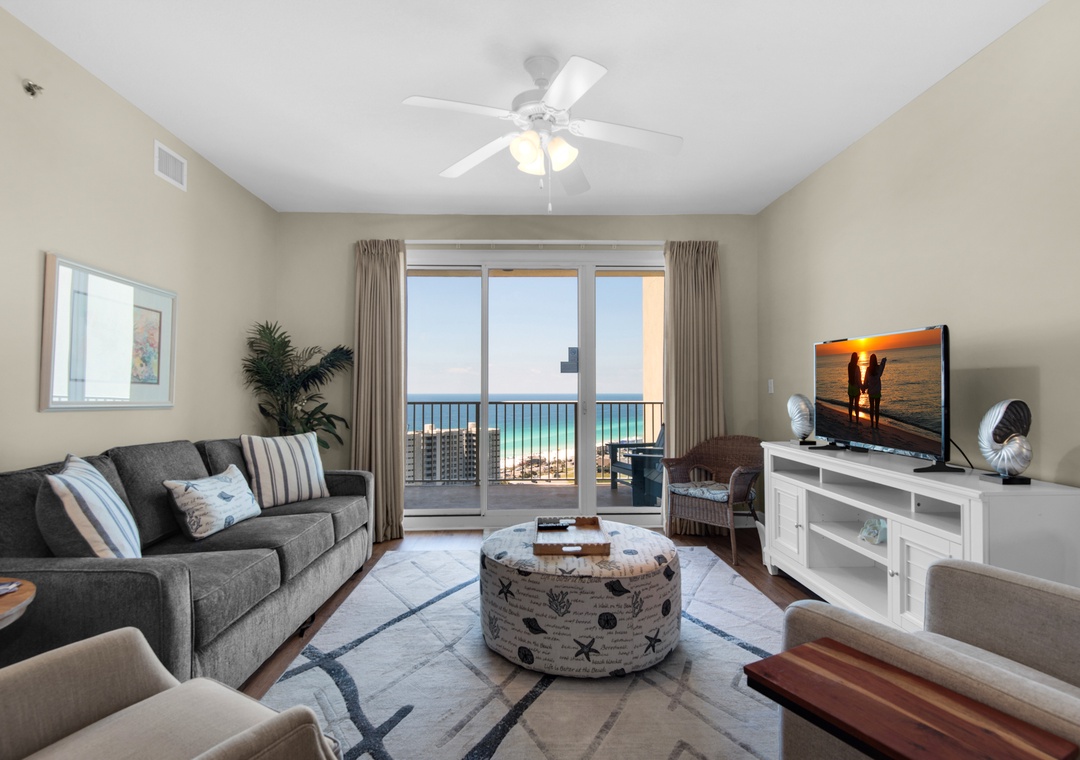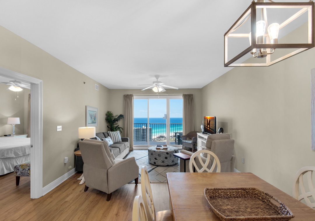 Welcome to Son-Sent Blessings II at Ariel Dunes, where you'll enjoy breathtaking panoramic views of the bay from the front door, stunning coastline vistas, Emerald waves, and a tranquil lake seen from the balcony, living room, and master bedroom. The spacious master bedroom features a king-size bed with balcony access, while the luxurious en-suite bath offers a garden tub, separate shower, and double vanities. The guest bedroom includes 2 twin beds, and there is a sleeper sofa in the living room, making this condo perfect for a comfortable stay for up to 6 guests. Whether you're brewing your morning coffee or preparing a gourmet meal, the fully equipped kitchen has everything you need. Dive into the multiple pools, relax in the sauna, and take full advantage of Seascape Resort's fantastic amenities. Discover why Ariel Dunes II 2103- Son-Sent Blessings II is a family favorite!