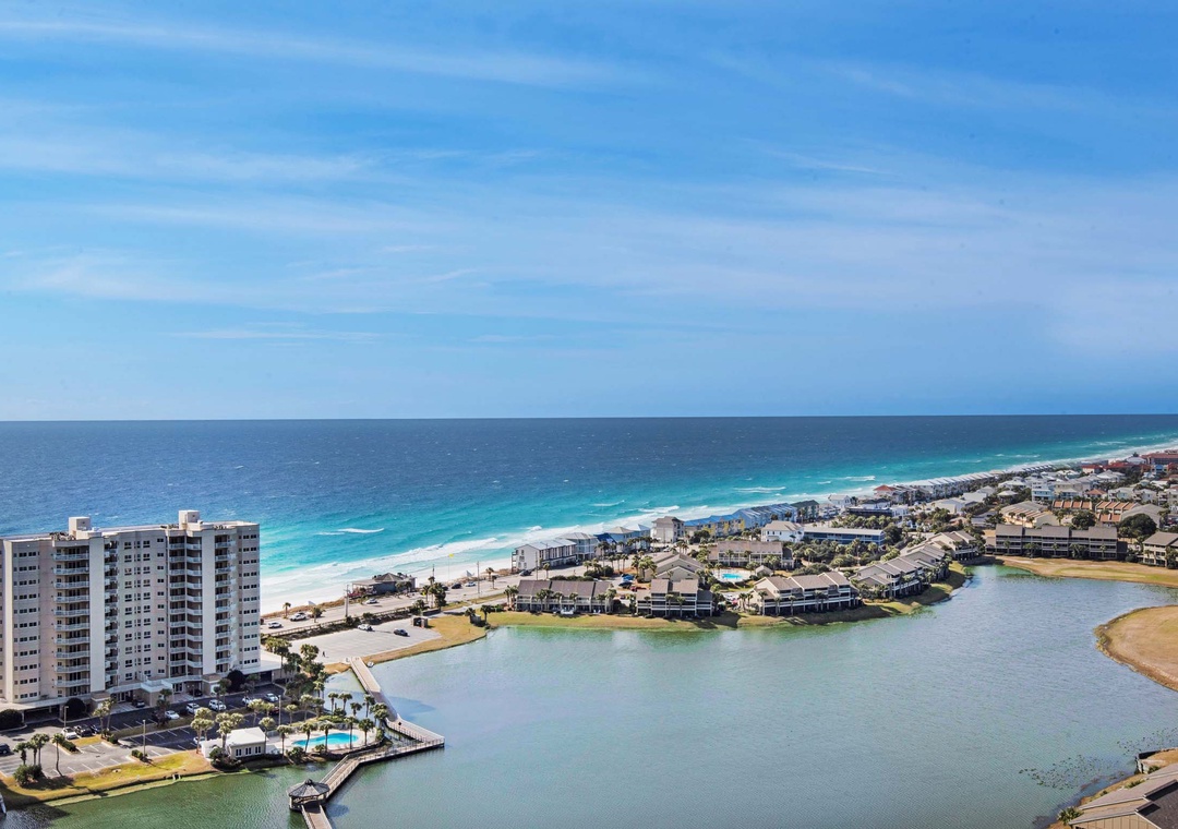 Located in Seascape Resort, Ariel Dunes II offers 24 stories of amazing westward views that span the sugar white sands and emerald green water of Miramar Beach. From the rear of the building, you get a bird's eye view of the lush 18-hole Seascape Golf Course. Ariel Dunes II features three large pools, one with zero entry and a spacious deck for lounging and catching some rays.