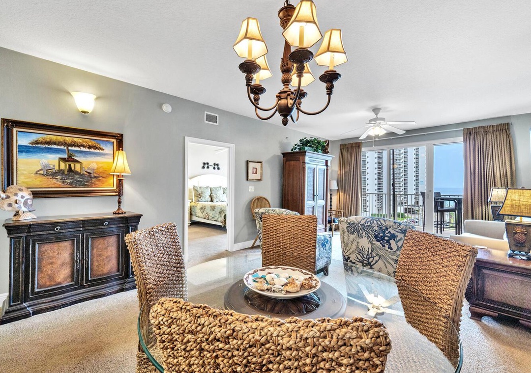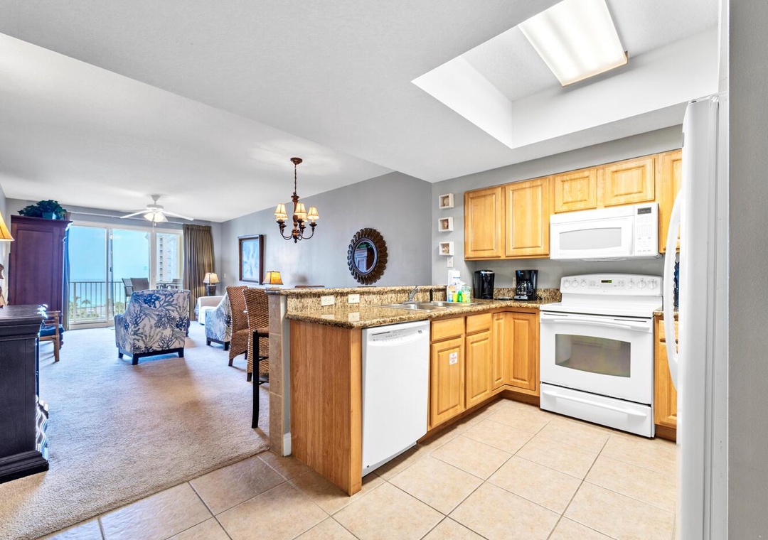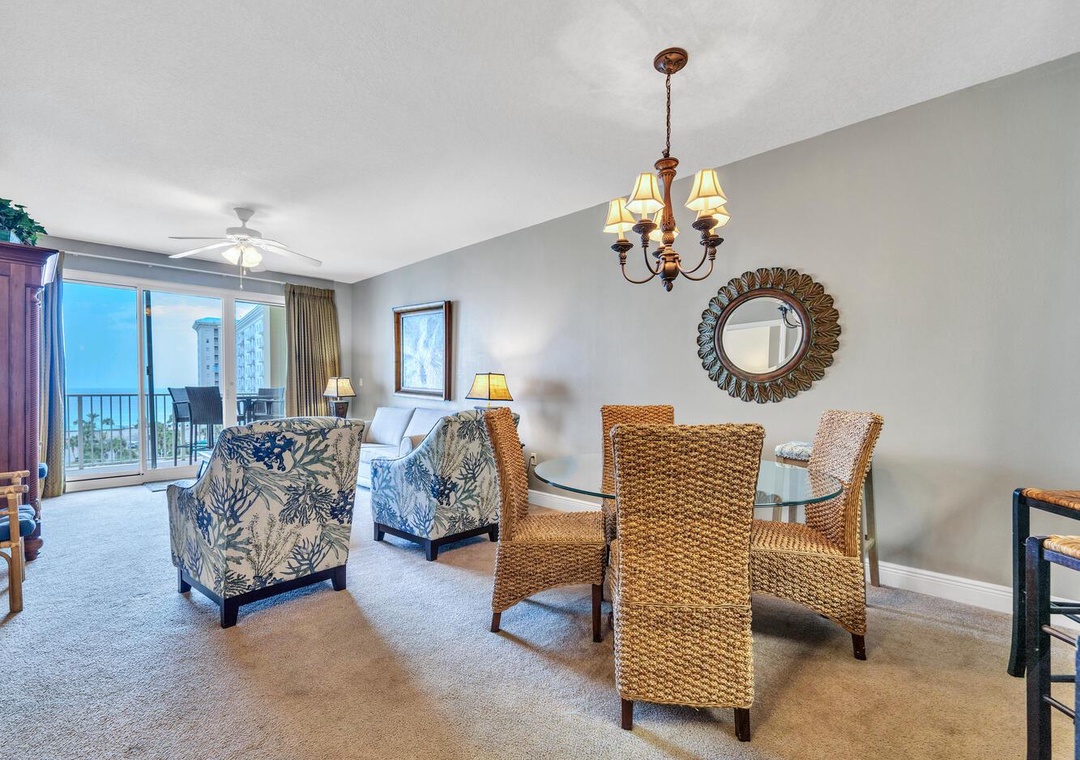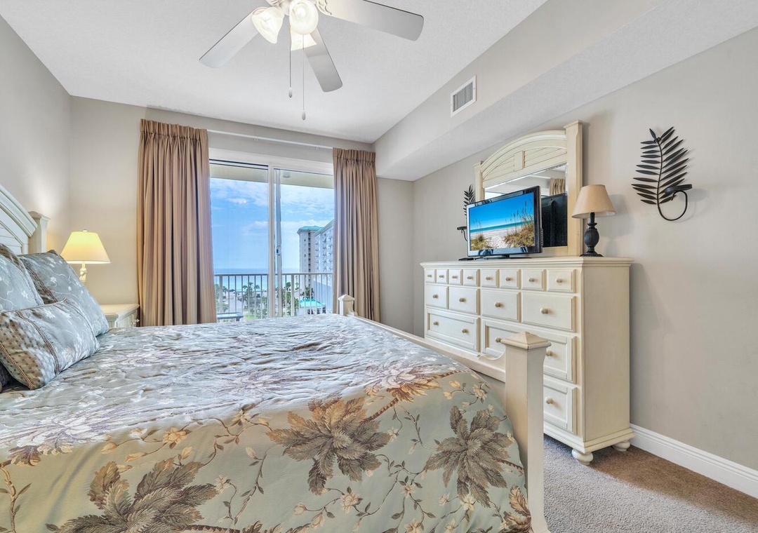 Enjoy spectacular Gulf and pool views from the private balcony of Ariel Dunes II 607, a beautifully appointed 2BR/2BA condo designed for comfort and relaxation. This spacious retreat features two full bathrooms, a king bed in the master bedroom, a twin-over-full bunk set in the guest bedroom, and a sleeper sofa in the living room—giving everyone plenty of room to unwind. Each condo boasts 9-foot ceilings and an 8-foot sliding glass door that perfectly frames the breathtaking Gulf views. Inside, you’ll find granite countertops, plush carpeting, elegant tile flooring, and a well-equipped kitchen ideal for preparing delicious meals. Keep up with your fitness routine at the on-site gym, then return to your private balcony to soak in the coastal scenery. Come start making lasting memories at Ariel Dunes II 607.