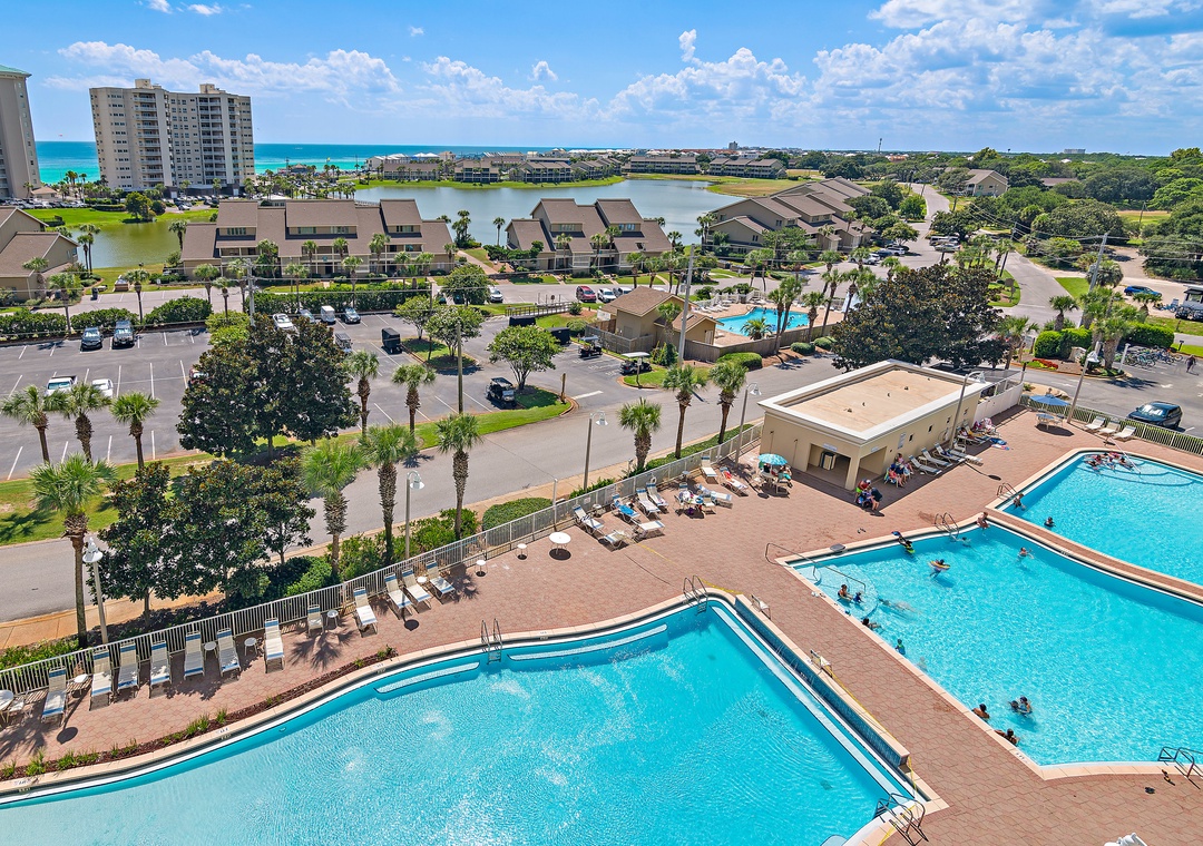 Located in Seascape Resort, Ariel Dunes II offers 24 stories of amazing westward views that span the sugar white sands and emerald green water of Miramar Beach. From the rear of the building, you get a bird's eye view of the lush 18-hole Seascape Golf Course. Ariel Dunes II features three large pools, one with zero entry and a spacious deck for lounging and catching some rays.