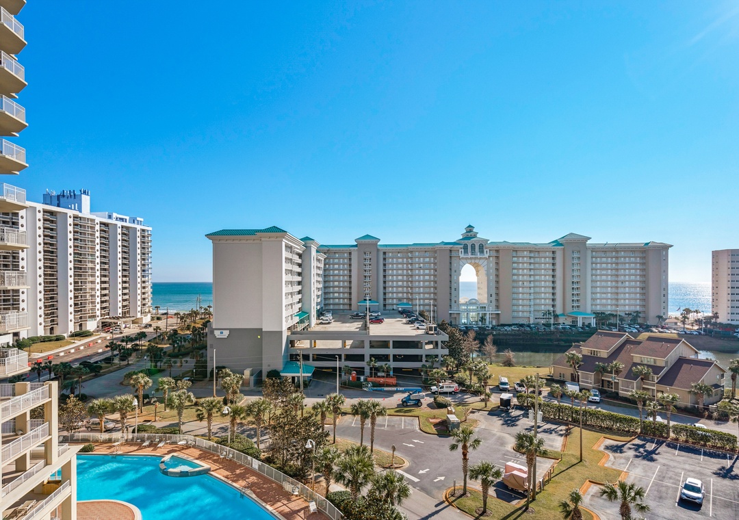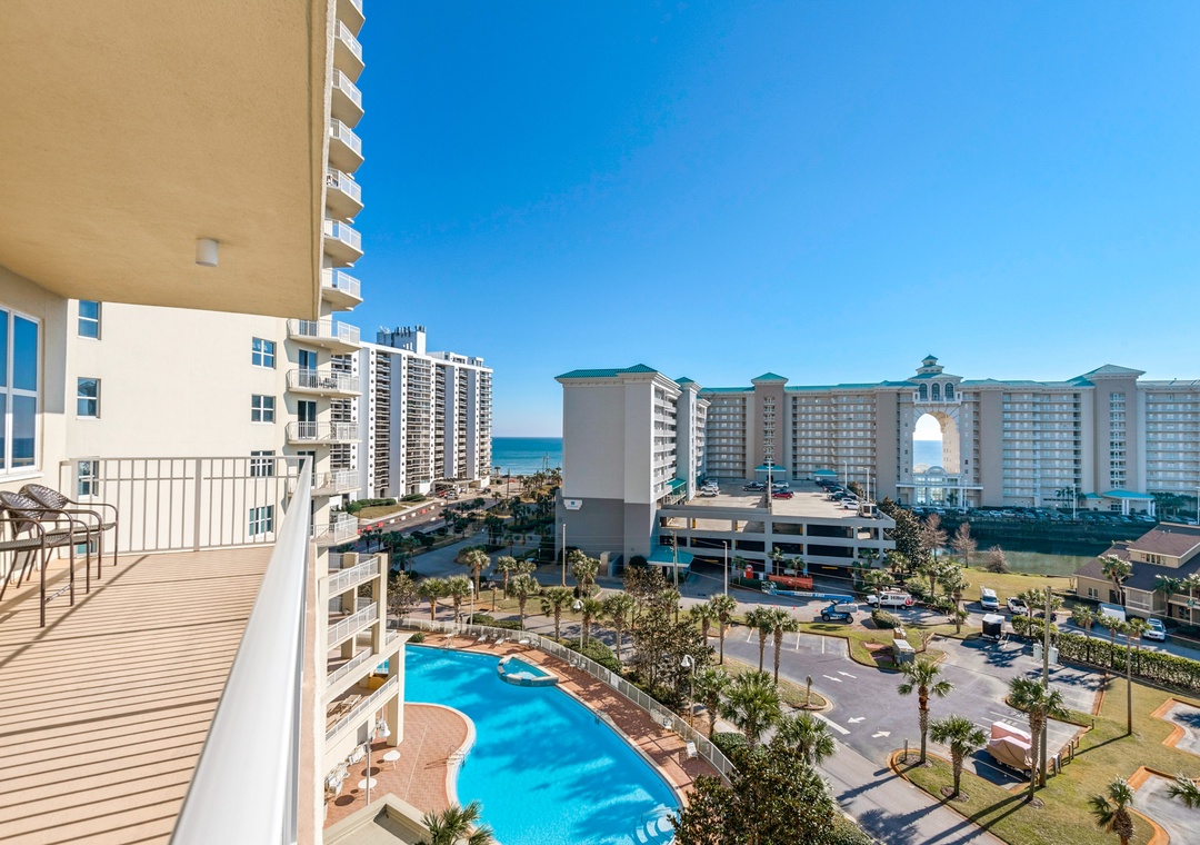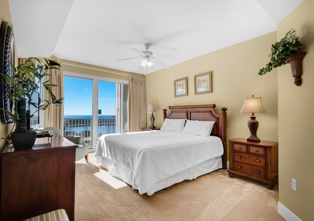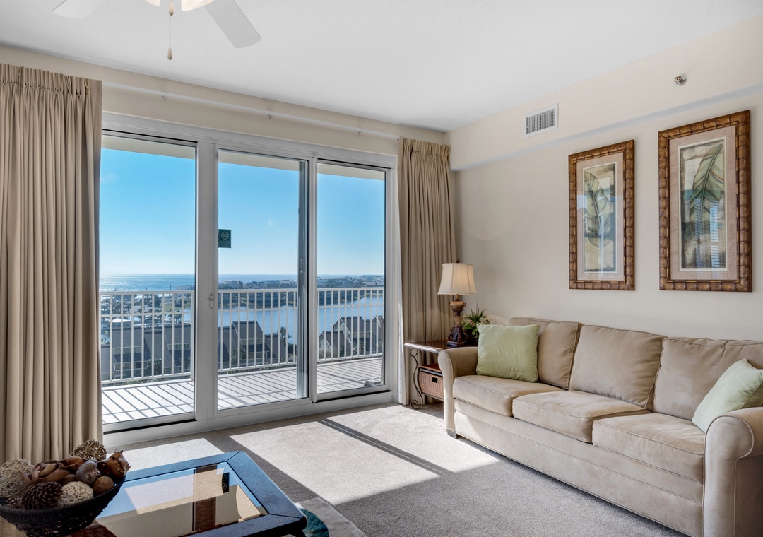 Enjoy spectacular lake views from the 8th floor, corner balcony of Ariel Dunes II 801! This beautiful 3 bedroom, 3 bath condo has a king bed in the master bedroom, a queen bedroom, a twin over full bunk bedroom, and a queen-sized sofa sleeper in the living room, comfortably sleeping up to 9 guests. This lovely condo is complete with granite countertops in the kitchen, a washer/dryer, large flat screen TV in the living room, and a large balcony with spectacular views! You will love the master suite which features a separate shower/garden tub in the bathroom and has balcony access! Enjoy the sunrise from the large balcony lounge chairs then stroll 350 yards to sugar white sands. Located in the luxurious Seascape Resort, enjoy free outdoor concerts, onsite golf, fitness center, water sport rentals, tennis, bike rentals and several restaurants including The Whale's Tail Beach Bar and Grill with live music. Come find your perfect vacation spot at Ariel Dunes II 801!