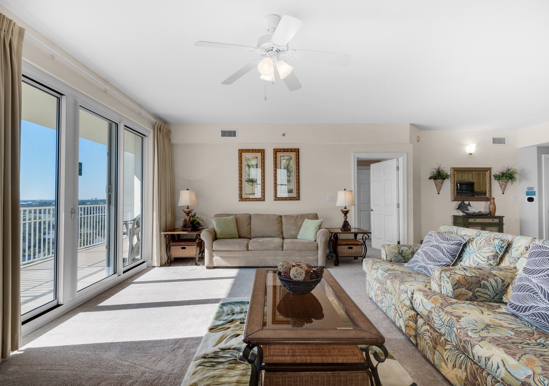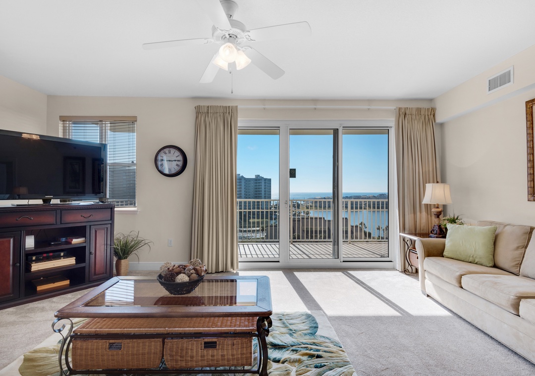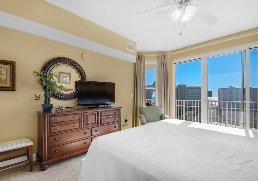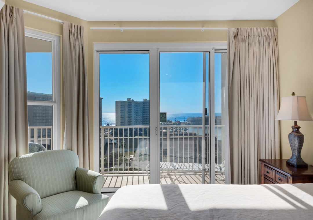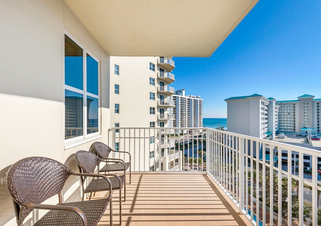 Enjoy spectacular lake views from the 8th floor, corner balcony of Ariel Dunes II 801! This beautiful 3 bedroom, 3 bath condo has a king bed in the master bedroom, a queen bedroom, a twin over full bunk bedroom, and a queen-sized sofa sleeper in the living room, comfortably sleeping up to 9 guests. This lovely condo is complete with granite countertops in the kitchen, a washer/dryer, large flat screen TV in the living room, and a large balcony with spectacular views! You will love the master suite which features a separate shower/garden tub in the bathroom and has balcony access! Enjoy the sunrise from the large balcony lounge chairs then stroll 350 yards to sugar white sands. Located in the luxurious Seascape Resort, enjoy free outdoor concerts, onsite golf, fitness center, water sport rentals, tennis, bike rentals and several restaurants including The Whale's Tail Beach Bar and Grill with live music. Come find your perfect vacation spot at Ariel Dunes II 801!