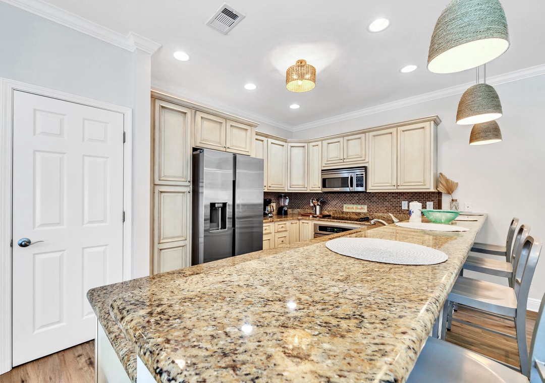 Hi Joni, thank you for your review! We're pleased to hear you found the kitchen well equipped and enjoyed the easy beach access. We value your referrals and hope you will come back to visit! Thank you again for your feedback and thank you for staying with Real Joy Vacations!Real Joy staff