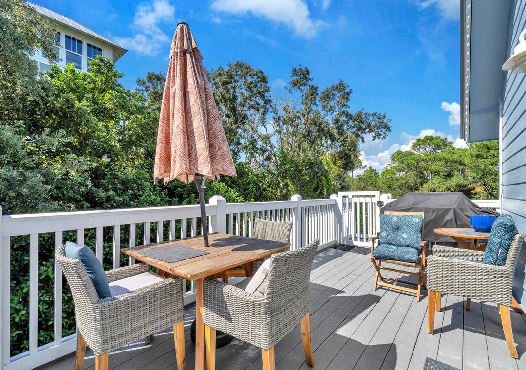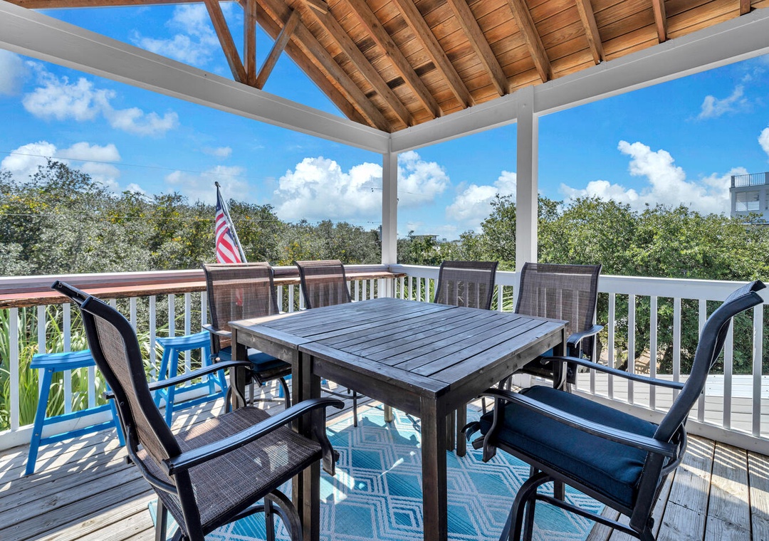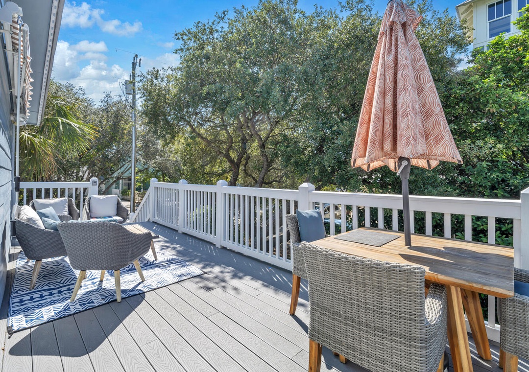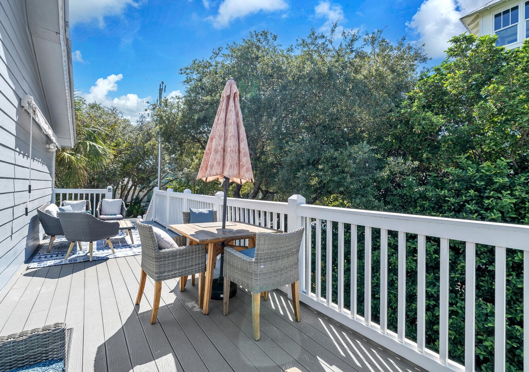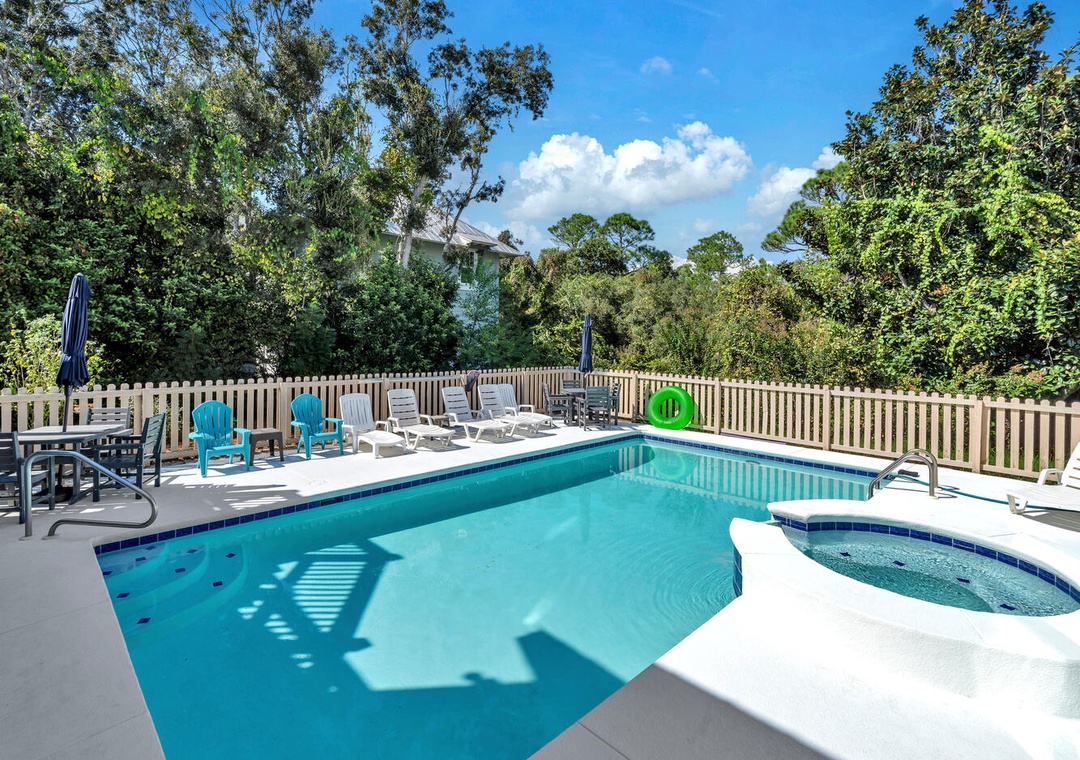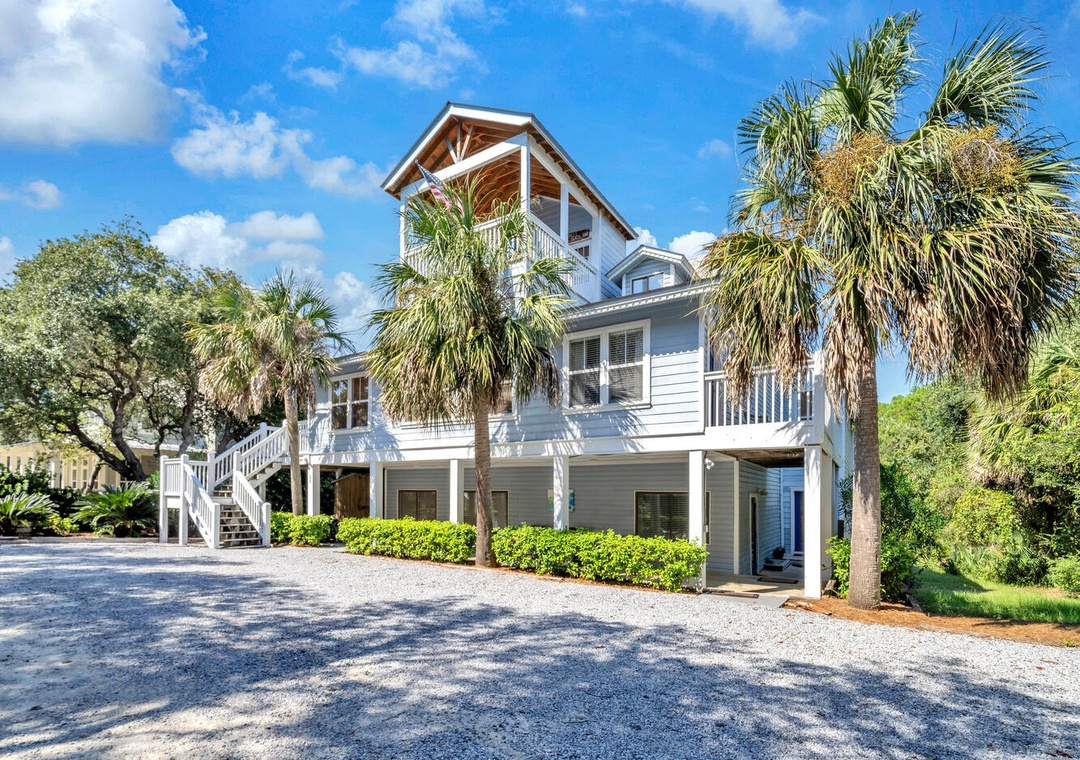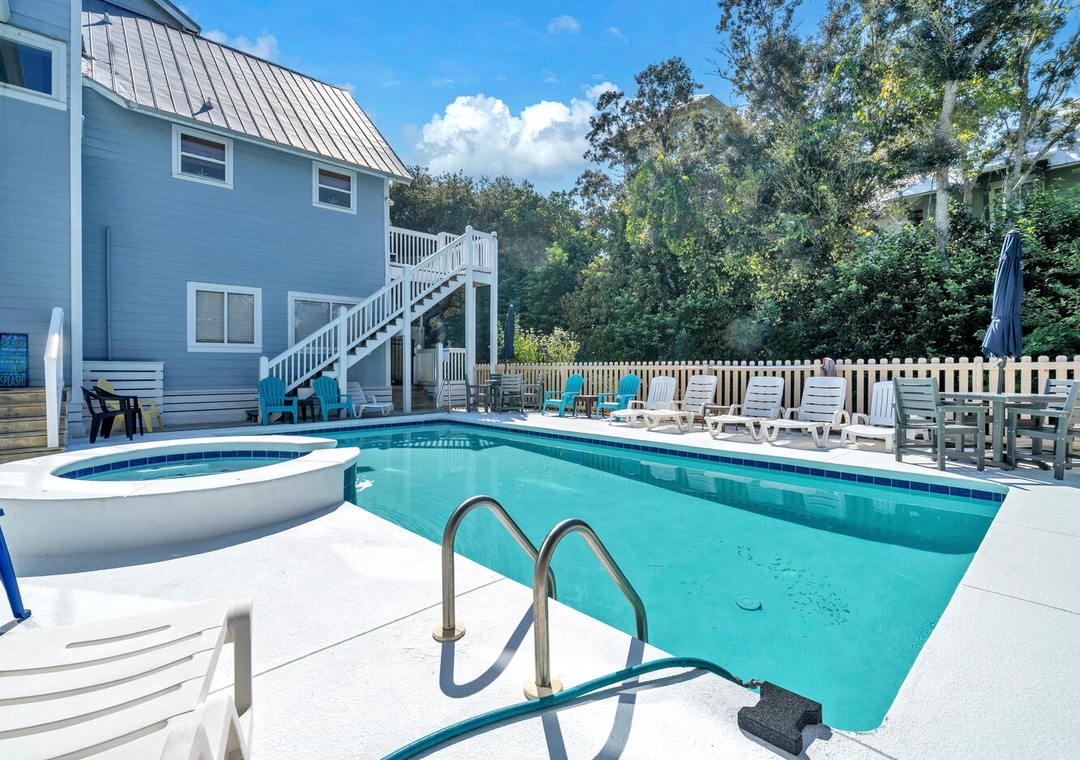 Relax poolside on the fenced-in pool deck with plenty of lounge chairs. Stroll down to the beach anytime you want, just 250 yards away! Sip your beverage of choice on the spacious Top Floor balcony w/ bar tables and chairs. Hungry? Walk a couple blocks to Surfing Deer and check out the fantastic cuisine in Seaside, or head a few miles east to The Big Chill on 30A. The driveway has plenty of parking, so bring your friends and family. This is truly the all-in-one vacation you have been looking for!
