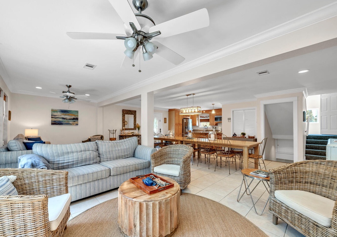 The house has multiple sections, so kids can play in one area, if someone wants to nap or relax elsewhere.