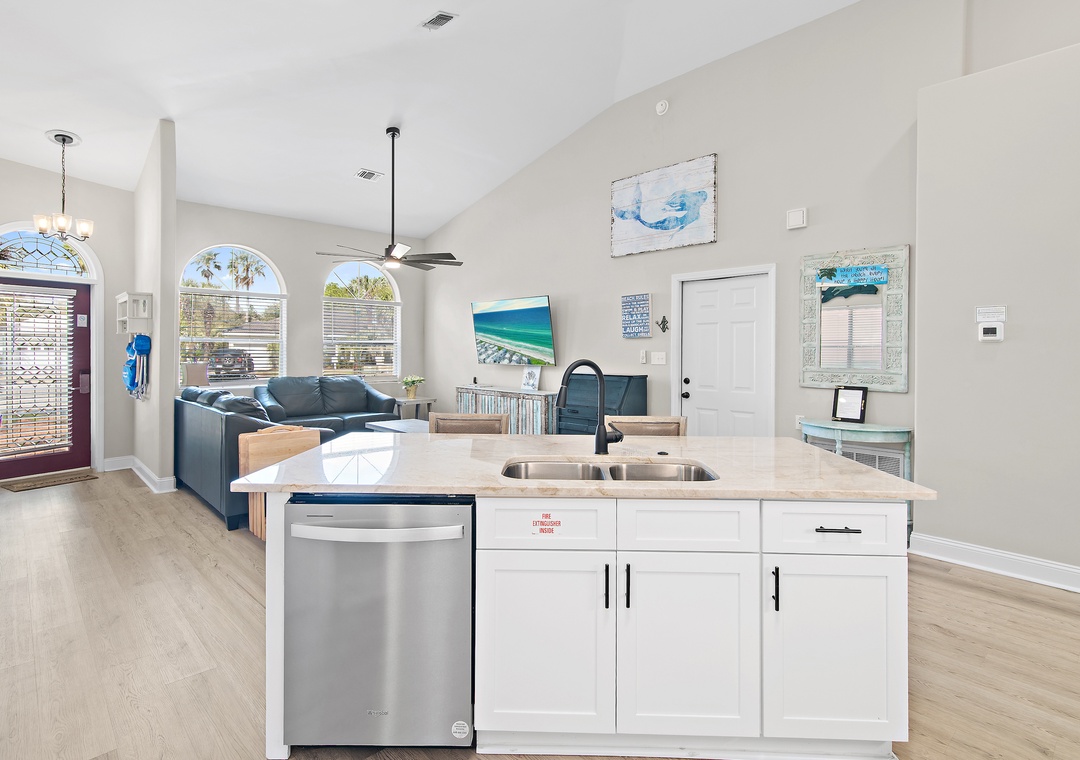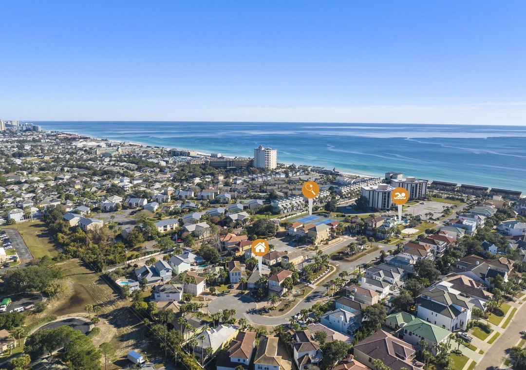 Escape to Beach Camp, a newly renovated retreat just a short stroll from the sugar-white sands of Crystal Beach. This beautiful 2-bedroom, 2.5-bath home features a spacious open-concept layout designed for comfort and connection, with a fully equipped kitchen perfect for preparing delicious meals. Step outside to unwind on the serene back porch or enjoy the private fenced backyard complete with a pool and outdoor gas grill—ideal for relaxing days in the sun. The master bedroom offers a king-size bed and an ensuite bathroom, while the guest bedroom includes another king bed, and the living room provides a queen sleeper sofa. A full air mattress in the closet allows the home to comfortably accommodate up to eight guests. Conveniently located within walking distance of gated beach access, as well as world-class shopping, dining, and entertainment, this Mediterranean-inspired community also offers a shared pool, sand volleyball court, and tennis courts. With its perfect blend of luxury, comfort, and location, Beach Camp has everything you need for an unforgettable coastal getaway.