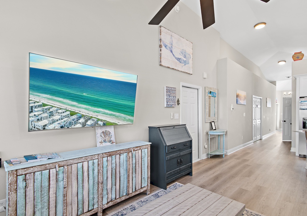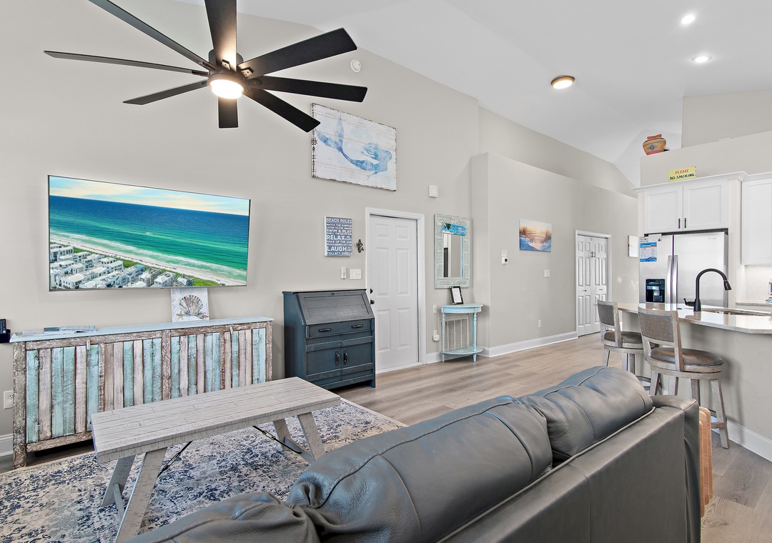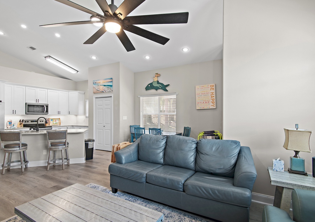 Living Room: Queen Sleeper Sofa and Full Air Mattress (stored in closet)