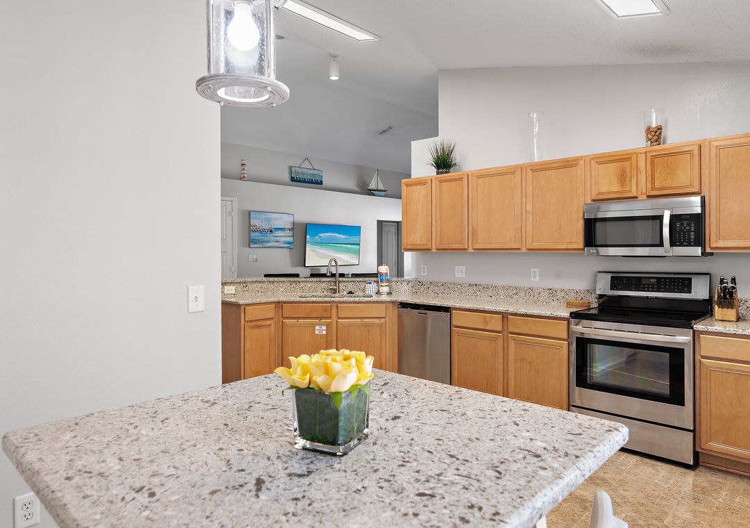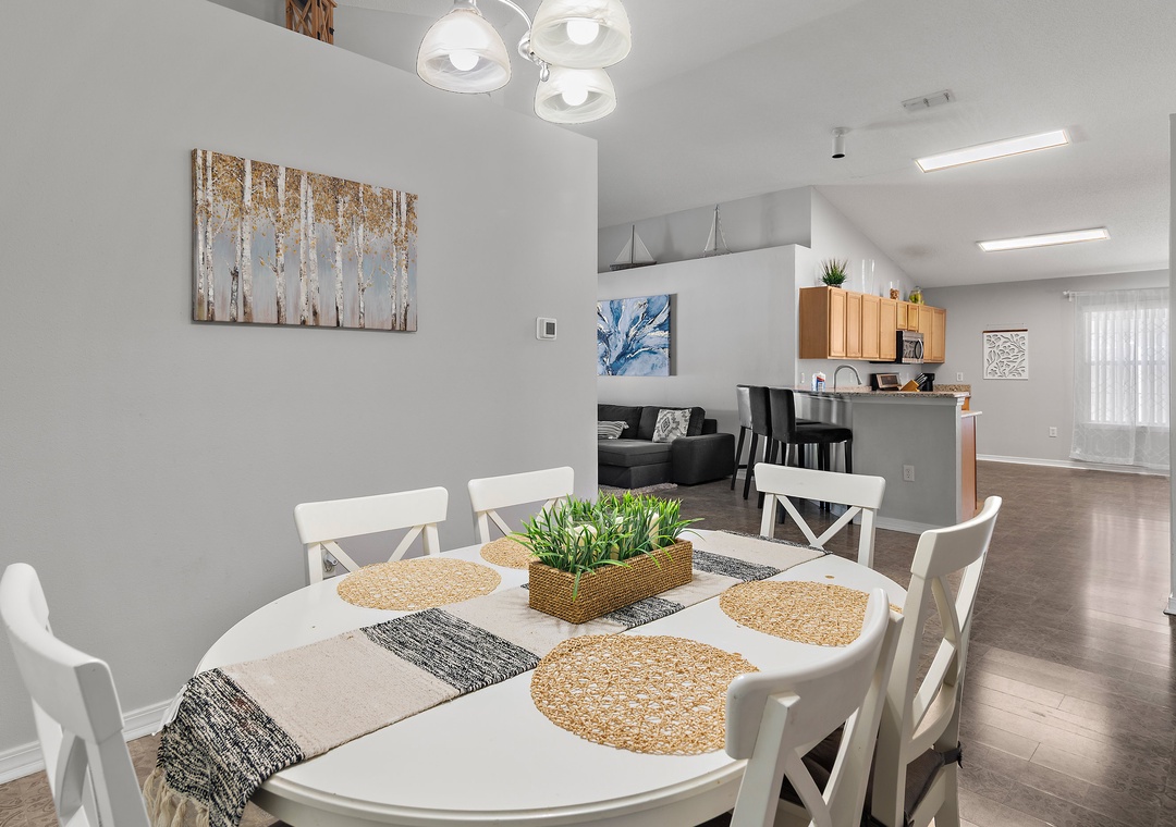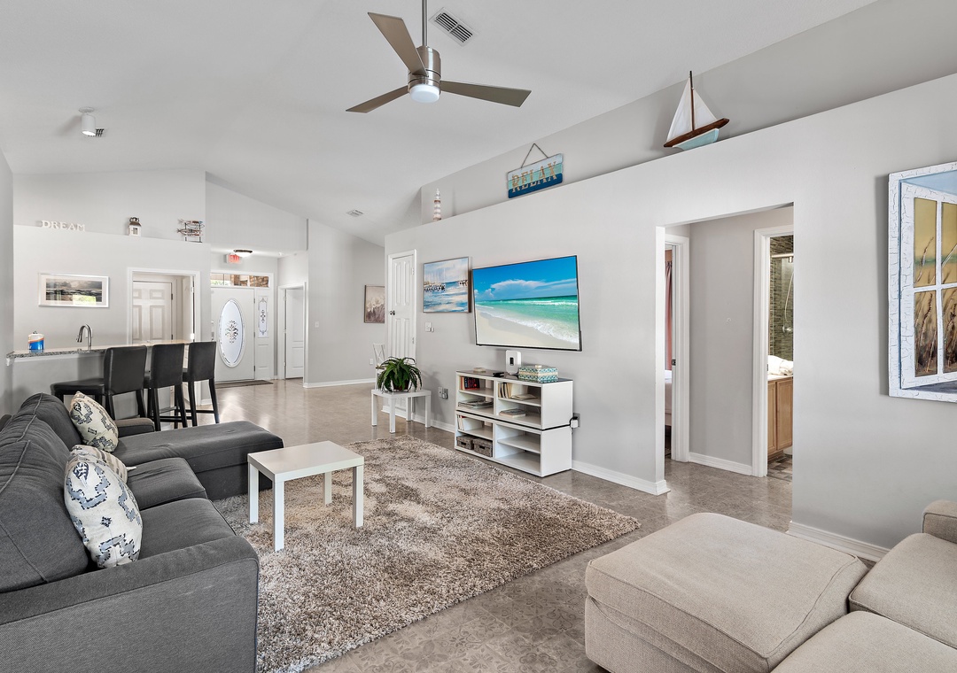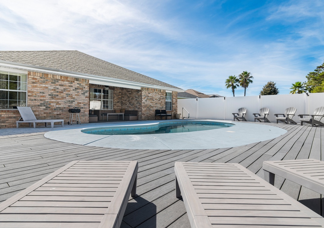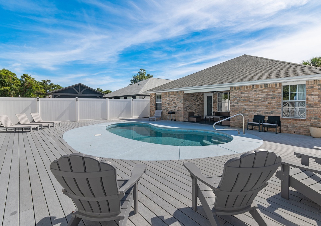 Welcome to Beach Fun at 231! This inviting 4-bedroom, 2-bathroom home is located in the gated Paradise Retreat community, just a short walk from private beach access—and best of all, it features its own private pool for you and your guests to enjoy anytime. Designed with a relaxed coastal feel, the home offers an open-concept layout that seamlessly connects the kitchen, dining, and living areas, perfect for family gatherings or relaxing after a day in the sun. The home comfortably sleeps up to 10 guests, with a Master King Bedroom featuring an ensuite bathroom, two Queen Guest Bedrooms, and a Bunk Room with twin-over-twin bunks. Outside, you'll find a spacious backyard and patio area that’s perfect for lounging, dining, or splashing around in your private pool, no crowds, no sharing, just your own personal retreat. Whether you're heading to the beach or staying in for poolside fun, Beach Fun at 231 is the perfect place to relax, reconnect, and make unforgettable memories.