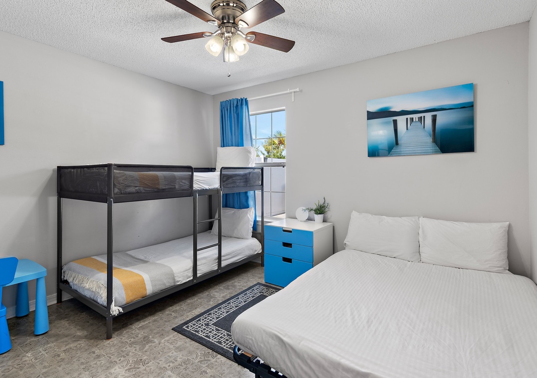 Guest Bedroom 3: Twin-over-Twin Bunk Bed and Full Futon