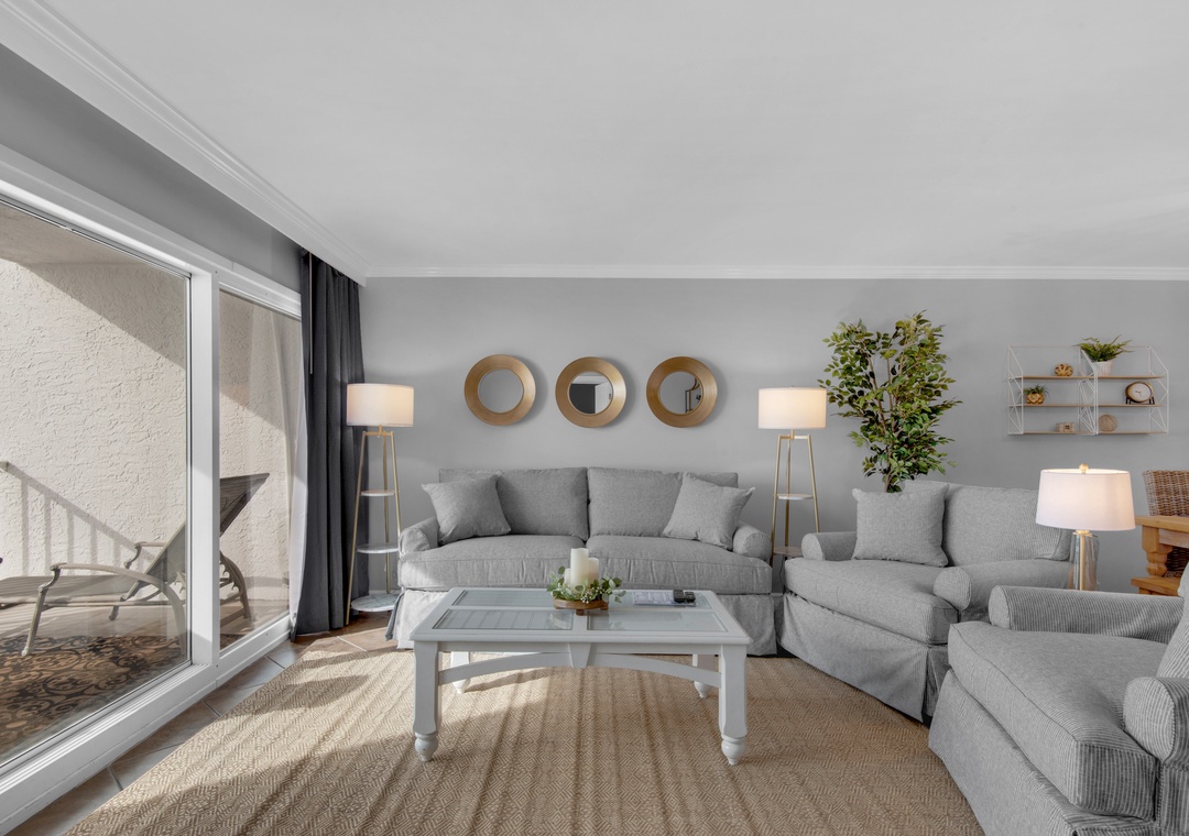 Thanks for staying with us, Elizabeth! We're so glad you enjoyed the balcony view, outdoor couch, and that the condo was clean, comfortable, and well stocked. Happy the beach setup and location made your days easy, and that you enjoyed great weather and water. We’d love to welcome you back!Real Joy staff