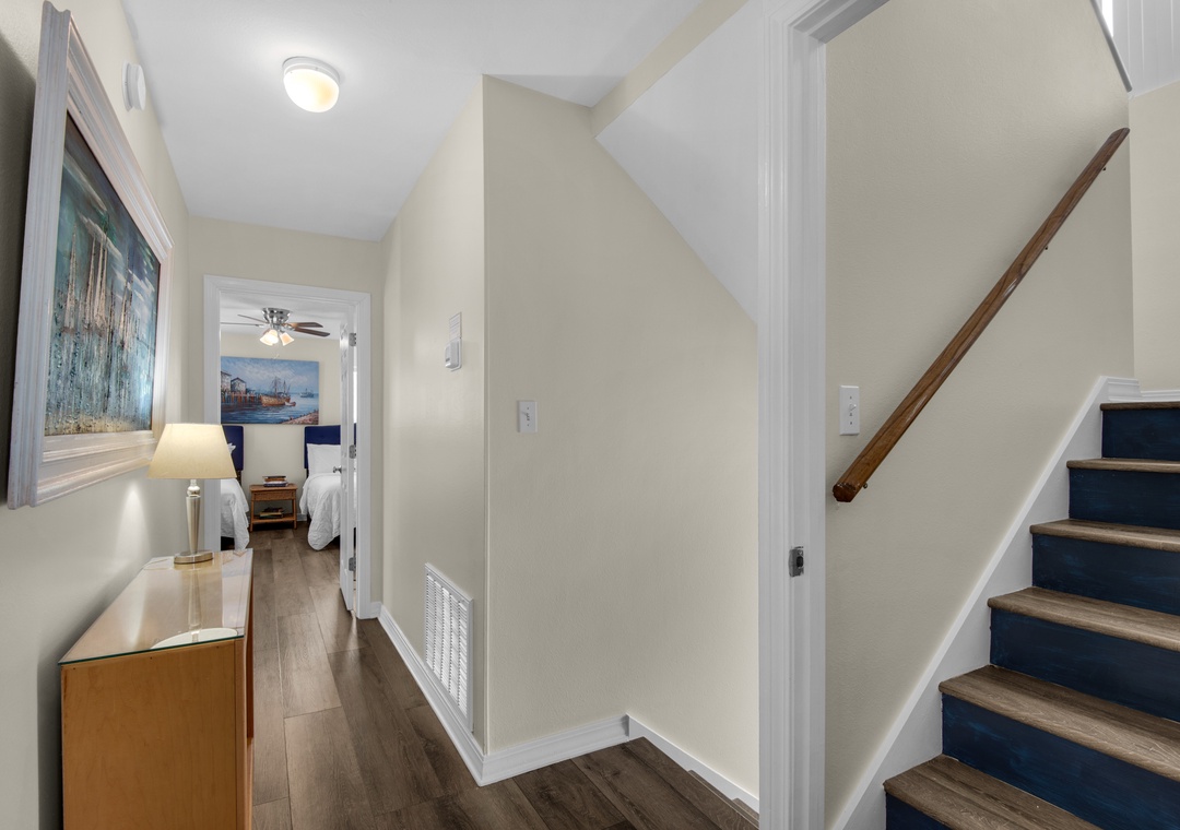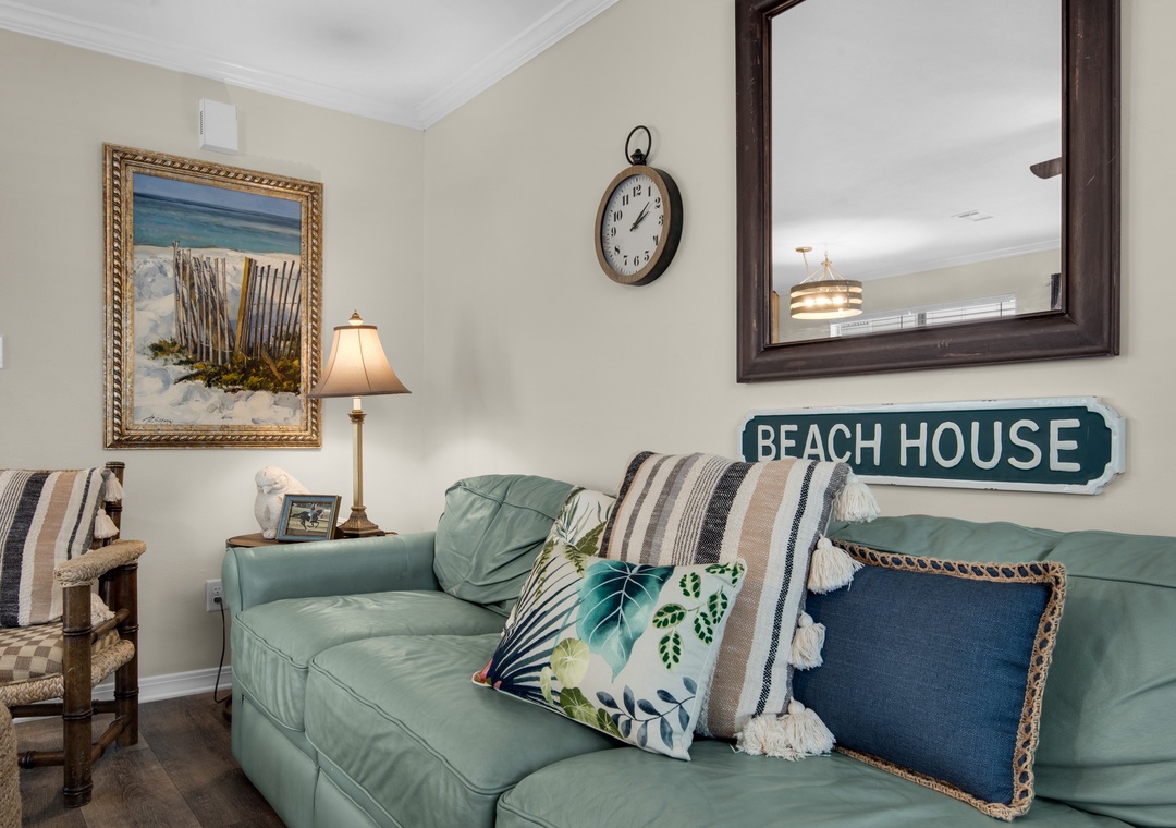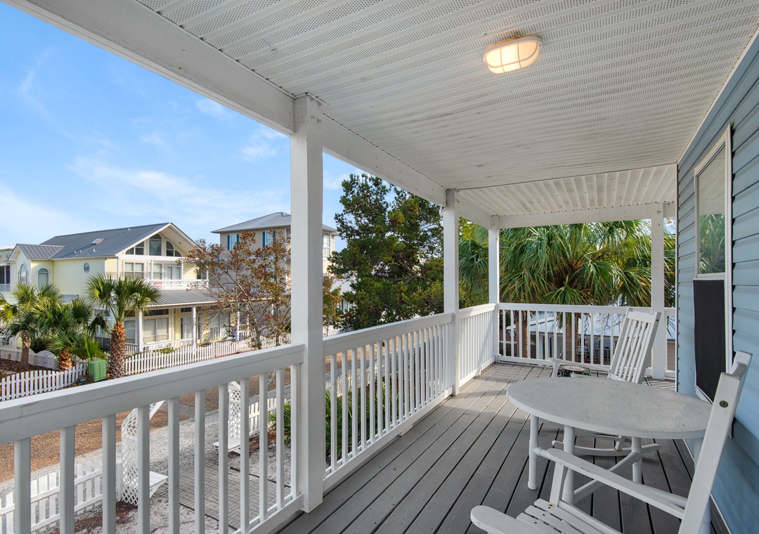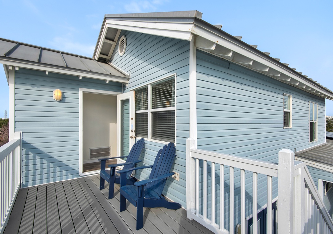 The living area on the main floor has brand new La-Z-Boy furniture. The downstairs bedroom is perfect for those guests who are unable to climb stairs. Most bedrooms have access to the wraparound porches and there are interior and exterior stairs providing access to the second and third level without going through the first floor. The exterior stairs are recommended for loading and offloading suitcases. There is plenty of off-street parking, which can be difficult to find at the beach. Five cars can fit into the driveway, and two large or three small vehicles can fit along courtyard on the east side of the house.