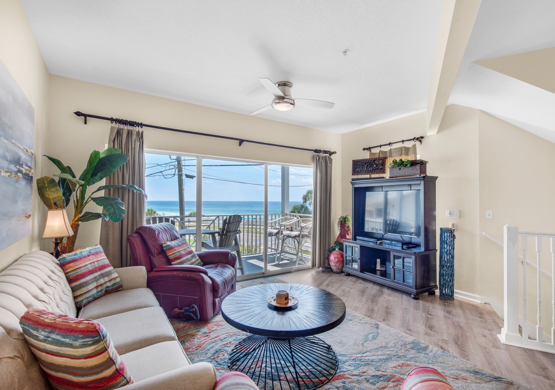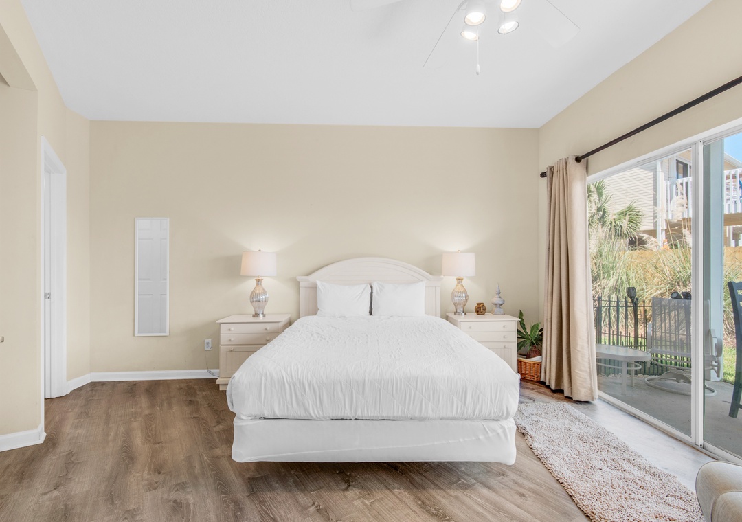 You’ll be a short walk to the beach in this charming 3BR/3BA townhome in Destin’s Beach Pointe community! Beach Pointe 101 features a spacious, 3-story floor plan with multiple balconies and a patio. The 2nd floor (main level) boasts a comfortable living area and a fully equipped kitchen with granite counter tops, stainless steel appliances, and a breakfast bar. This beautiful townhome sleeps 10 guests, featuring a queen bedroom with a sleeper chair on the first floor, on the second floor is a queen guest room and the third-floor king master suite with a wet bar and a private balcony. If the kiddos want to have a campout in the living room, we have a queen air mattress and rollaway they can sleep on for the night. Take a short stroll to the gated beach access, splash around in the community pool, or chill on one of your private balconies! You’ll have everything you need and more at Beach Pointe 101.