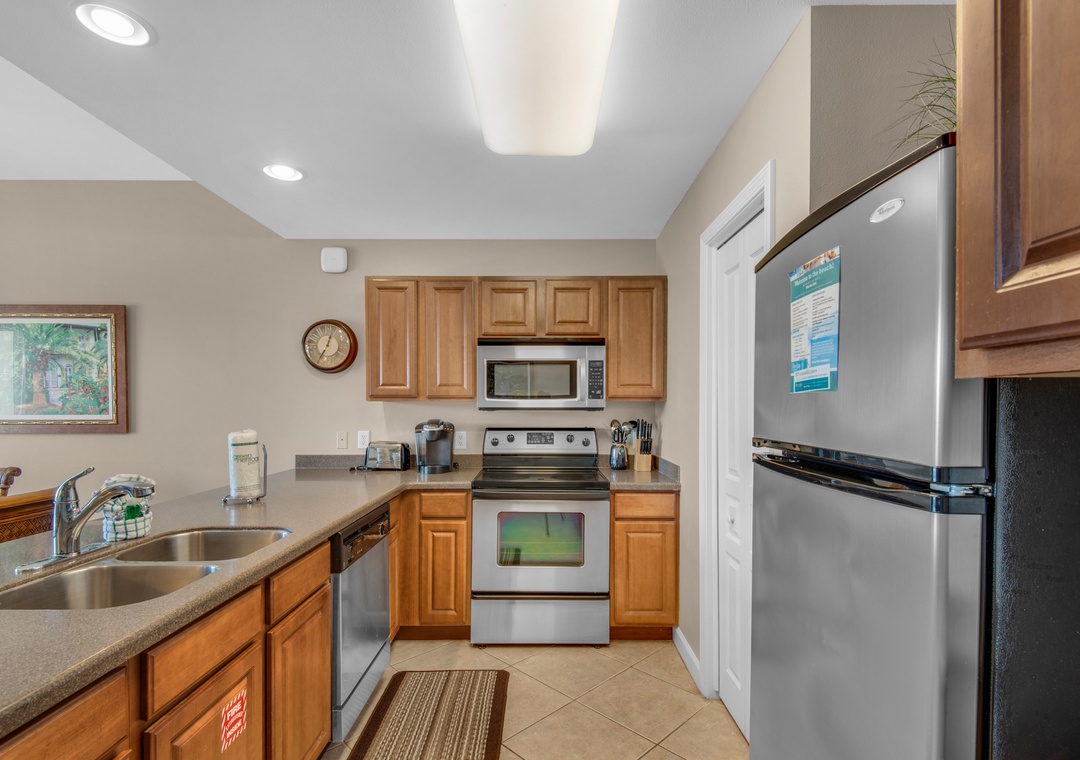 *Fully Equipped Kitchen with Stainless Steel Appliances + Granite Counters