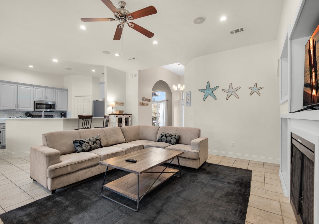 Outside, you'll find a private pool, an outdoor kitchen, and a sandpit volleyball court, creating the perfect space for dining and relaxing together. With parking for up to four cars, you can easily host friends and family for an unforgettable beach vacation at Beach Retreat.