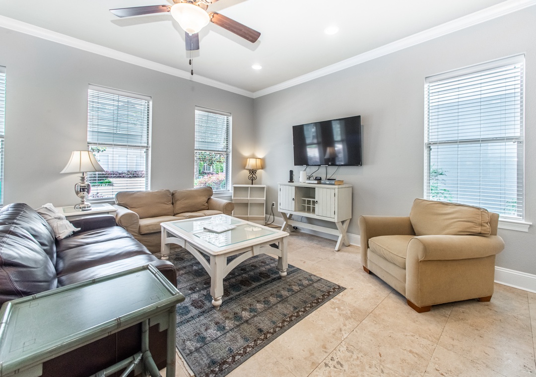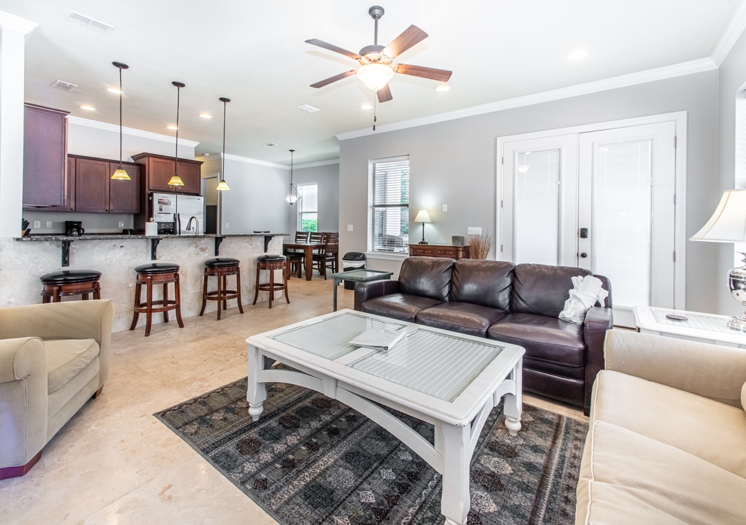 Villages of Crystal Beach is an exclusive, gated community only a few blocks from the beautiful blue waters and white sandy beaches of Destin. You can make the walk on foot or hop on the free seasonal trolley service (Memorial Day through Labor Day) they will even pick you up at the house and drop you off right at the beach! The pool area at Villages of Crystal Beach is a vacation must! The lagoon style zero entry pool is 30,000 square feet of gorgeous, sparkling clear water. There is a spa, tropical landscaping, and plenty of seating areas. It also has surround sound, a flat screen TV, and a grilling area to help you relax and unwind.