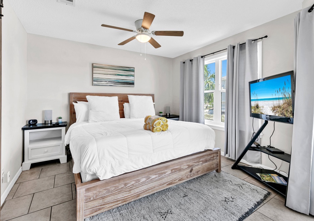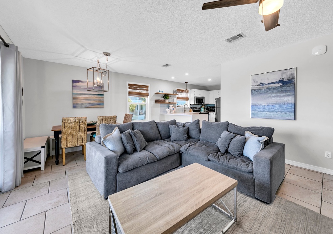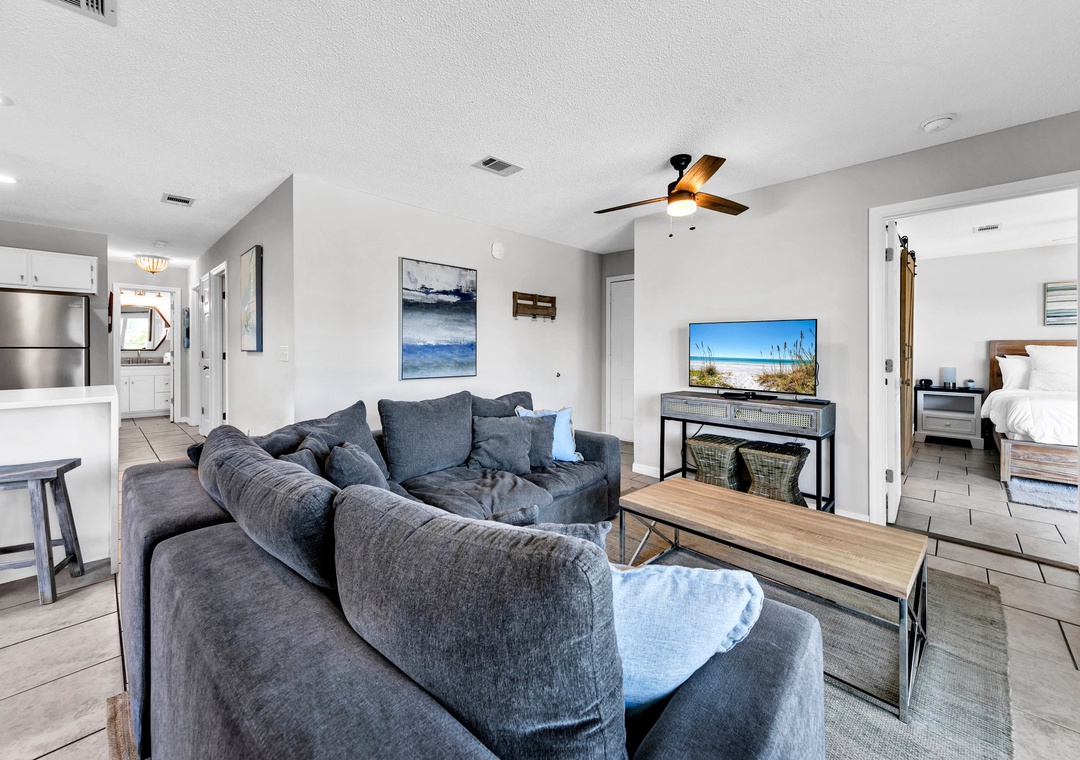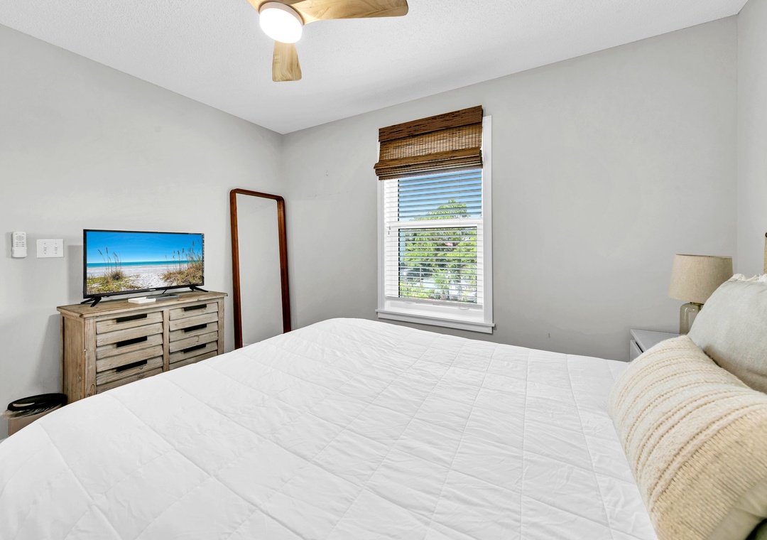 Located in Seagrove Beach, Beachside Villas is one of the many hidden gems on the beaches of South Walton. This recently updated condo is located near one of the 2 pools in the complex. There is a golf cart trolley to/from beach available for our guests at Beachside Villas from March through October. The complex also boasts tennis and shuffleboard courts and a clubhouse that can be reserved for group functions. Beachside Villas 1121 sleeps 8. 1 King-size bed, 1 Queen-size bed, 1 Full-size bed, and 1 set of Twin over Twin bunks.