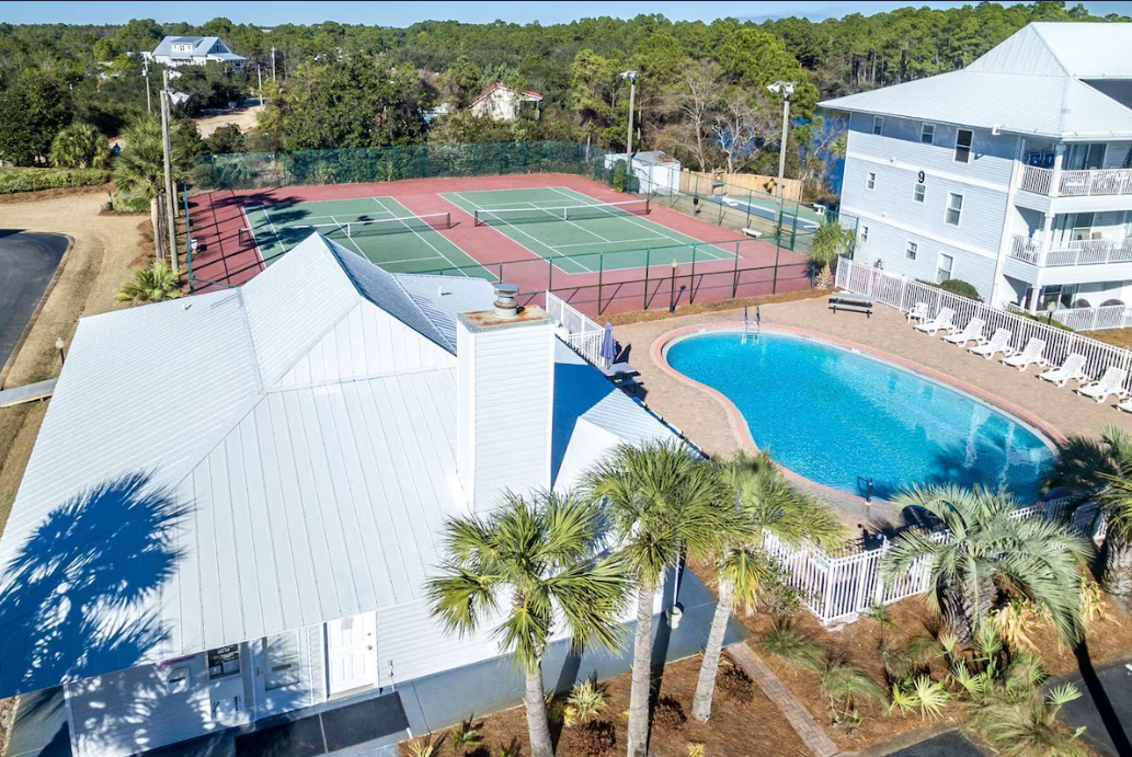 located in the Beachside Villas of Seagrove Beach. This charming community has everything you need, including two heated pools, tennis courts (rackets and balls supplied by the HOA), a Pickle Ball court, and charcoal grills at every building along the green space facing the ocean. Seagrove Beach is one of the charming coastal communities that sit on 30A, nestled between Seaside and Watersound. Offers both “Lakelife” as well as “Saltlife”!