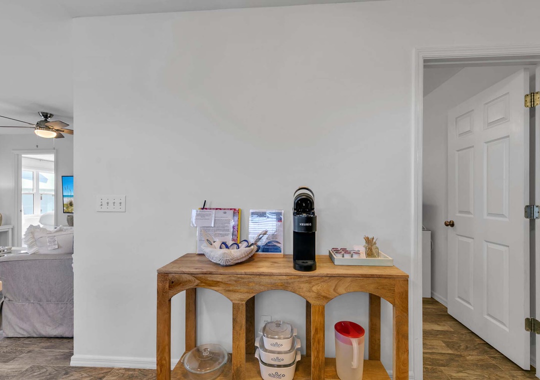 Barbara, Thank you for taking the time to let us know about your vacation. We're glad you enjoyed your stay and were pleasantly surprised by the Keurig and hair dryers, along with the well-equipped kitchen supplies. We hope to welcome you back again soon! Thank you for choosing RealJoy.Real Joy staff