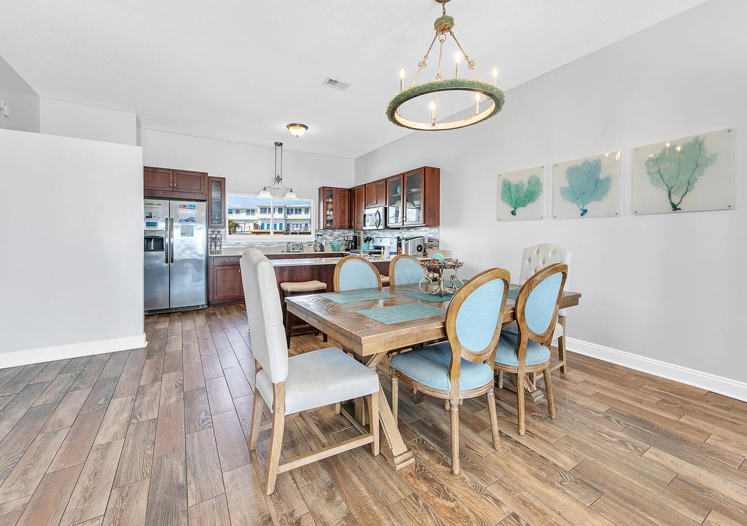 Karen, Thank you for the 5-star review. We are thrilled to hear that the townhouse worked so well for your family's needs, with the convenient layout and proximity to the beach. We appreciate your feedback about the dining room furniture and are glad to hear that you had no major issues during your stay. We look forward to seeing you again soon. Thank you for choosing RealJoy.Real Joy staff