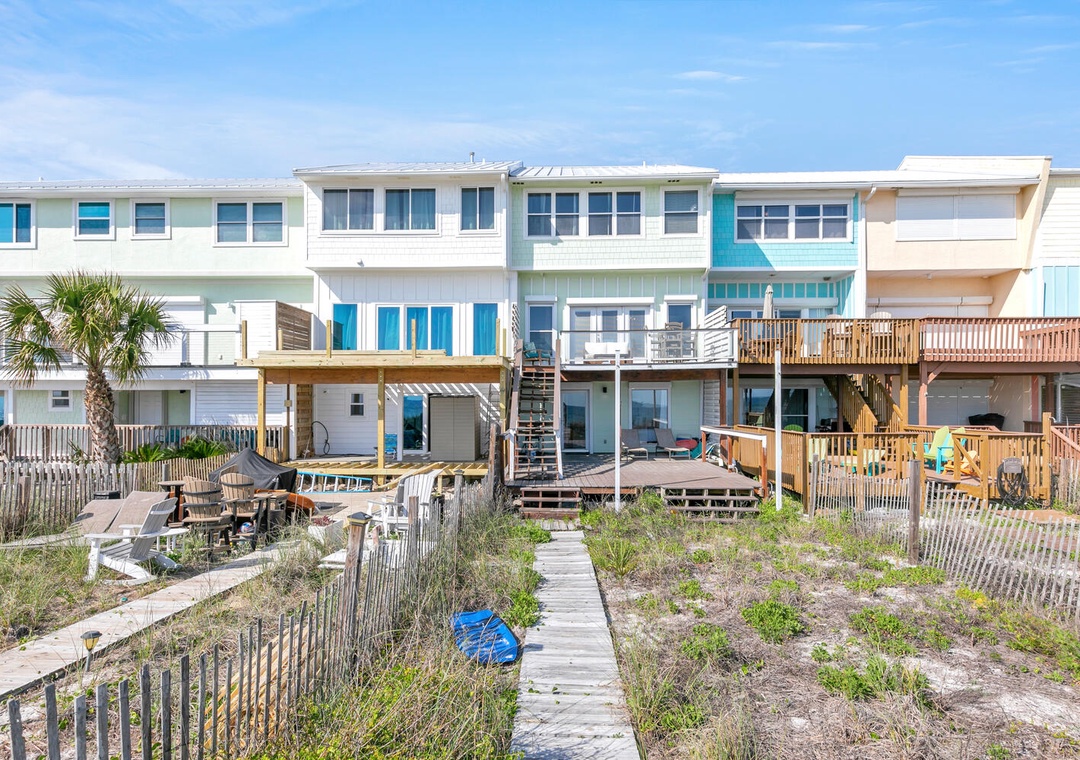 Beachside West is a side by side, 15-unit townhome community on the quiet west end of Panama City Beach. With beach access directly out your back door and Gulf Front views at every turn, this is the perfect spot for a fun filled vacation. Each townhome was built with relaxation in mind, with a balcony, patio, and a private path to the beach. Beachside West is also close to several Panama City Beach favorites, like Pier Park, Frank Brown Park, and Thomas Donut and Snack Shop.