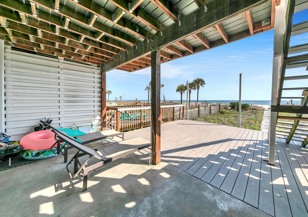 Angie, Thank you for taking the time to let us know about your vacation. It's great to hear that you enjoyed the convenient beach access and the back porch. We hope you'll visit us again soon for another relaxing getaway. Thank you for choosing RealJoy.Real Joy staff