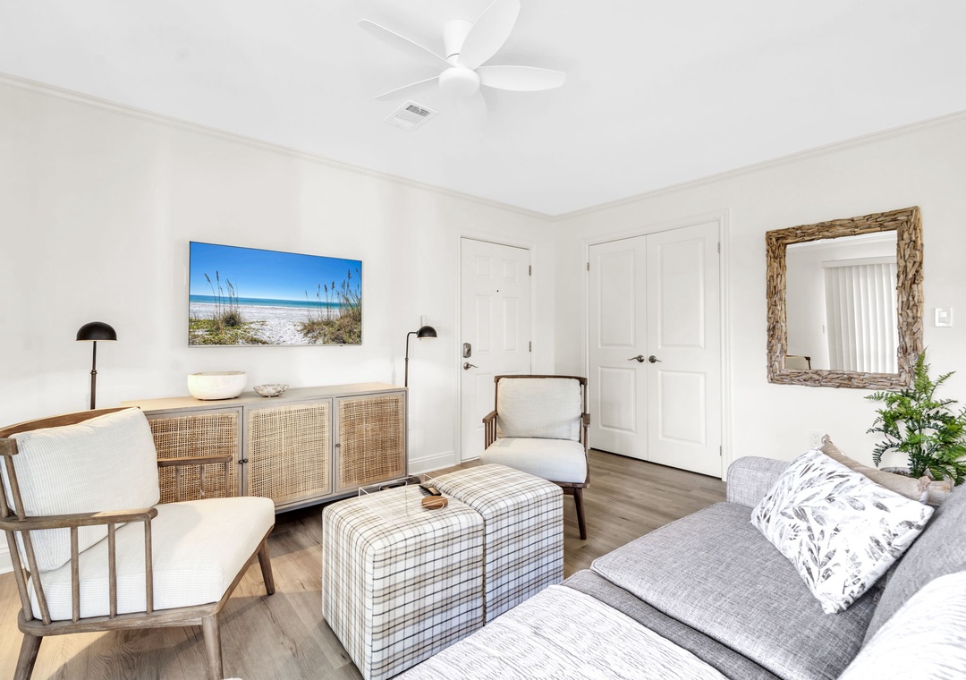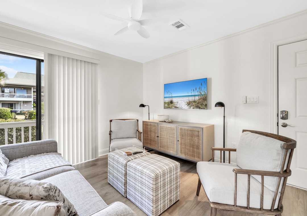 Welcome to Beachwood Villas 1G – a beautifully remodeled, ground-floor 1-bedroom condo just steps from the sugar-white sands of 30A. This charming retreat comfortably sleeps up to 4 guests, featuring a cozy queen master bedroom and a queen sleeper sofa in the living area. The fully equipped kitchen makes it easy to whip up your favorite meals, whether you're dining in or enjoying a picnic outside. During your stay, take advantage of fantastic amenities including two community pools (one seasonally heated), lighted tennis courts, and a spacious grilling and picnic area. Whether you're here to relax, explore, or soak up the sun, Beachwood Villas 1G offers the perfect beach getaway on 30A.