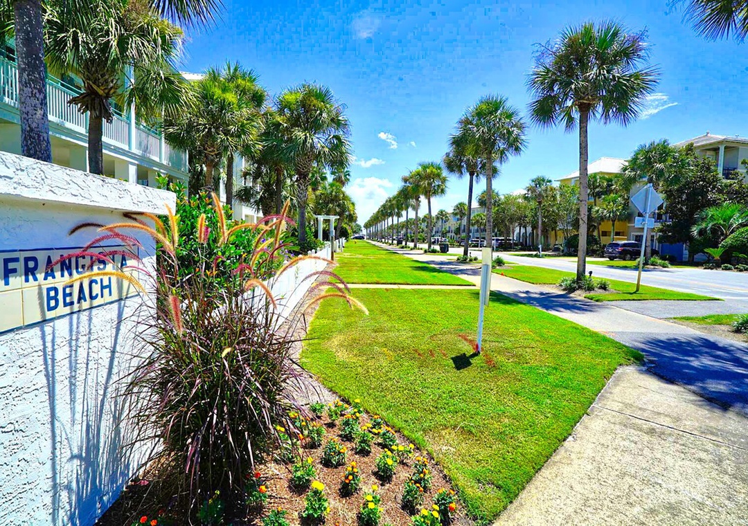 The Villas of Frangista is a quiet, gated community with cobble stone streets, a community pool and some small ponds for the kids to fish in. Located in the heart of Miramar Beach, this community is just minutes from the sugar white sands, close to favorite local restaurants, and nearby some of the best shopping in the area. This lovely neighborhood is practically next door to the Seascape Golf Resort, which offers tee times to members of the public and has superior tennis facilities. Wander down the beach to the Whale's Tail or Surf Hut for a bite, take a dip in the lovely community pool, or catch some rays on the sugar white beaches.