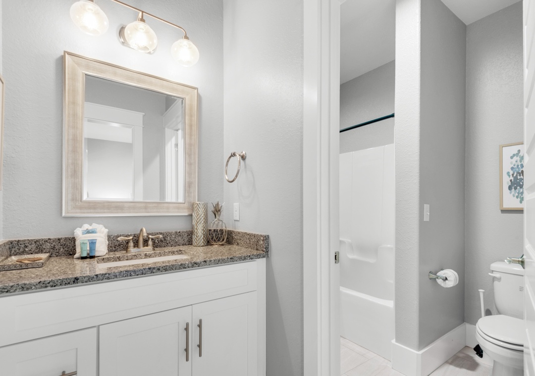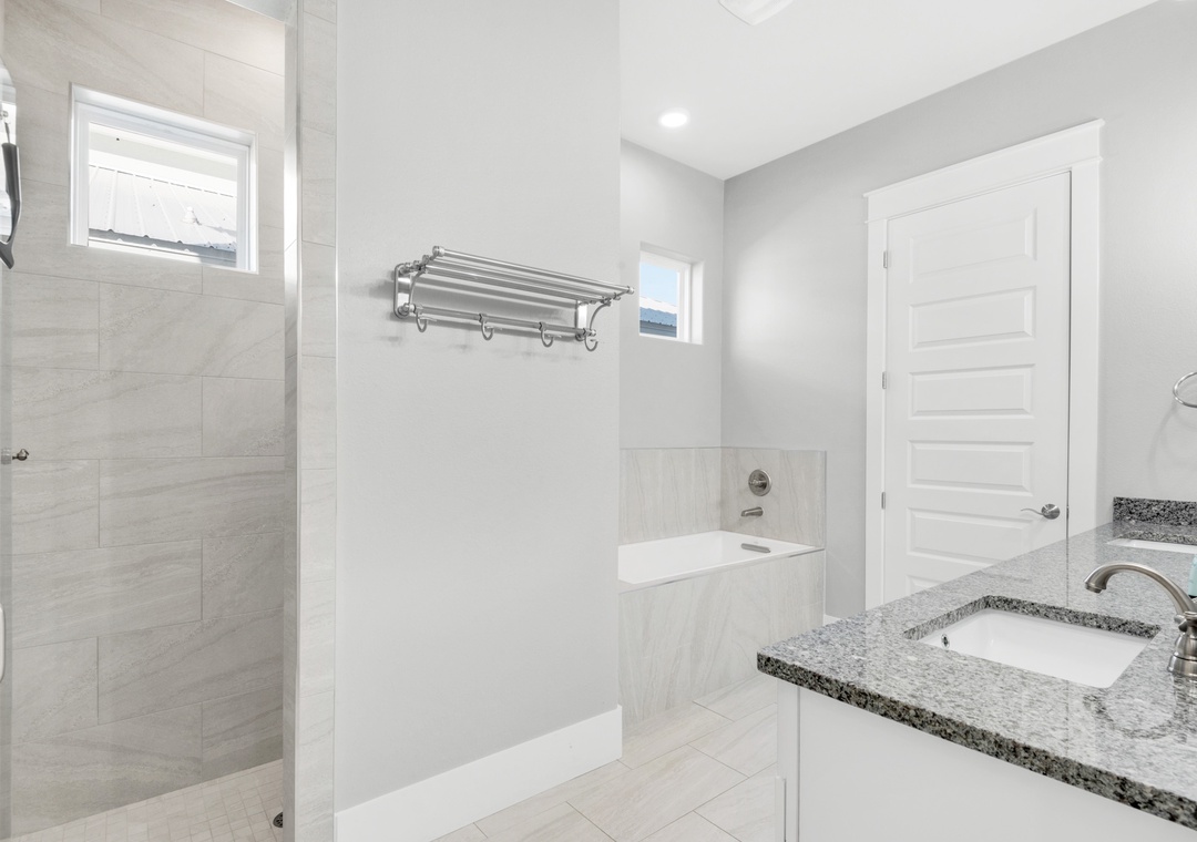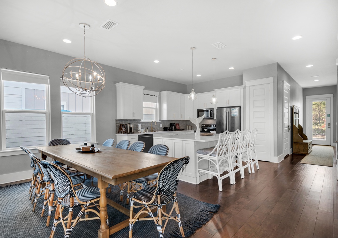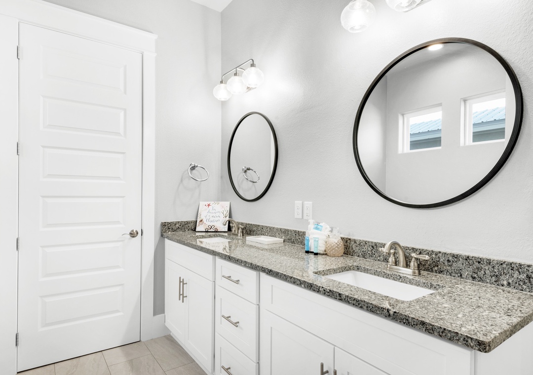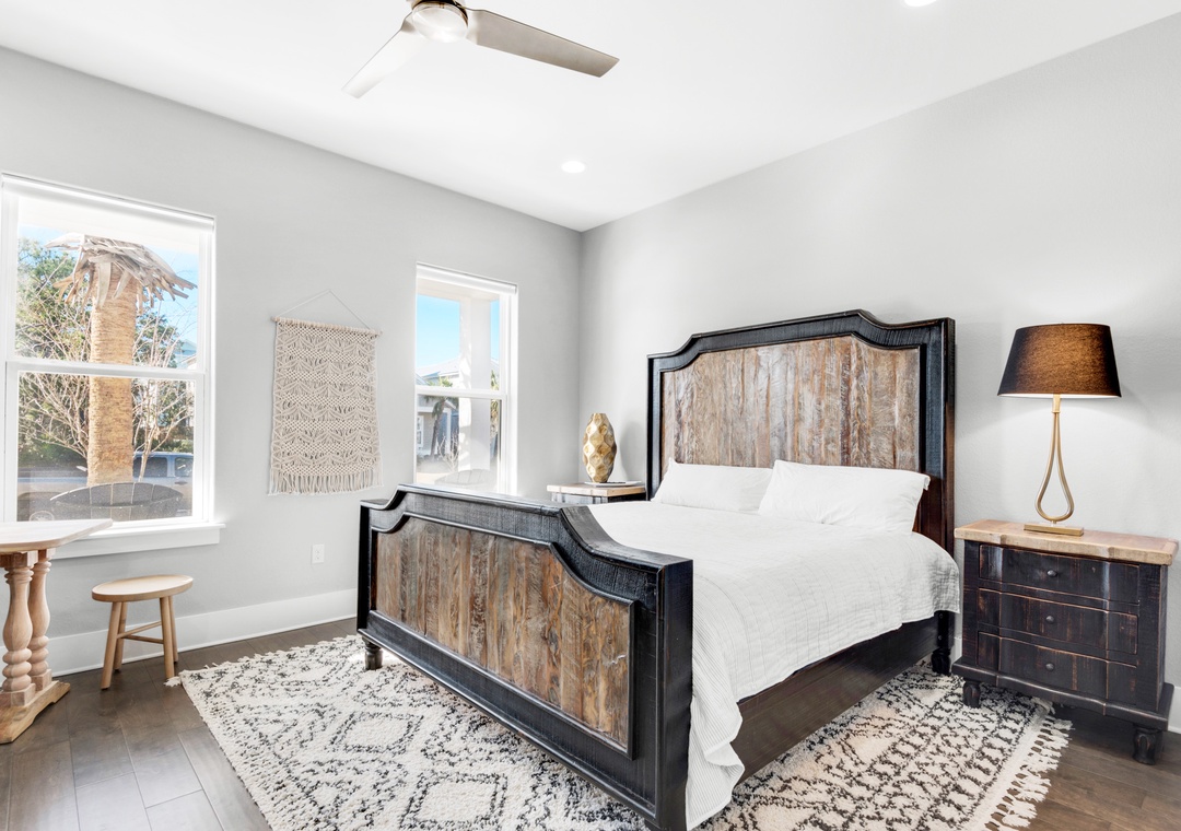 Located in Villas of Frangista, Bikini Bottom is a 4BR, 3.5BA beautifully furnished beach home, complete with a gourmet kitchen, hardwood floors throughout, granite countertops with a large island, stainless steel appliances, and two master bedrooms! The downstairs king master suite has a private sitting area and en suite bathroom with double vanities, a walk-in shower, and a separate soaking tub. Additionally, there is an upstairs king master, a guest room with a queen bed, and a guest room with a queen over-queen bunk bed with a twin trundle, sleeping up to 11 guests comfortably! When not enjoying the beach, take a stroll to the community pool only a couple of blocks away. Come have the vacation of a lifetime at Bikini Bottom! Please note that the golf cart in the garage is not available for guest use, and there is not enough space to park a vehicle; however, guests are welcome to use the beach chairs, wagon, trash can, and other accommodations in the garage.
