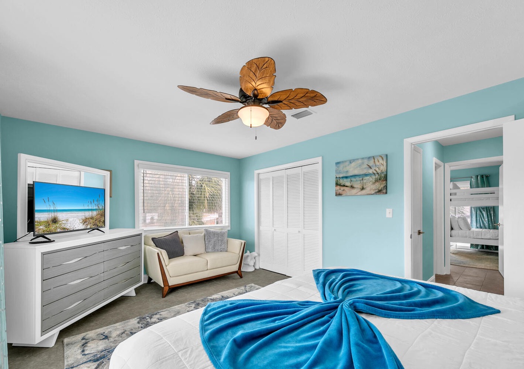 Guest Bedroom: Queen Bed + Twin-over-Twin Bunkbed