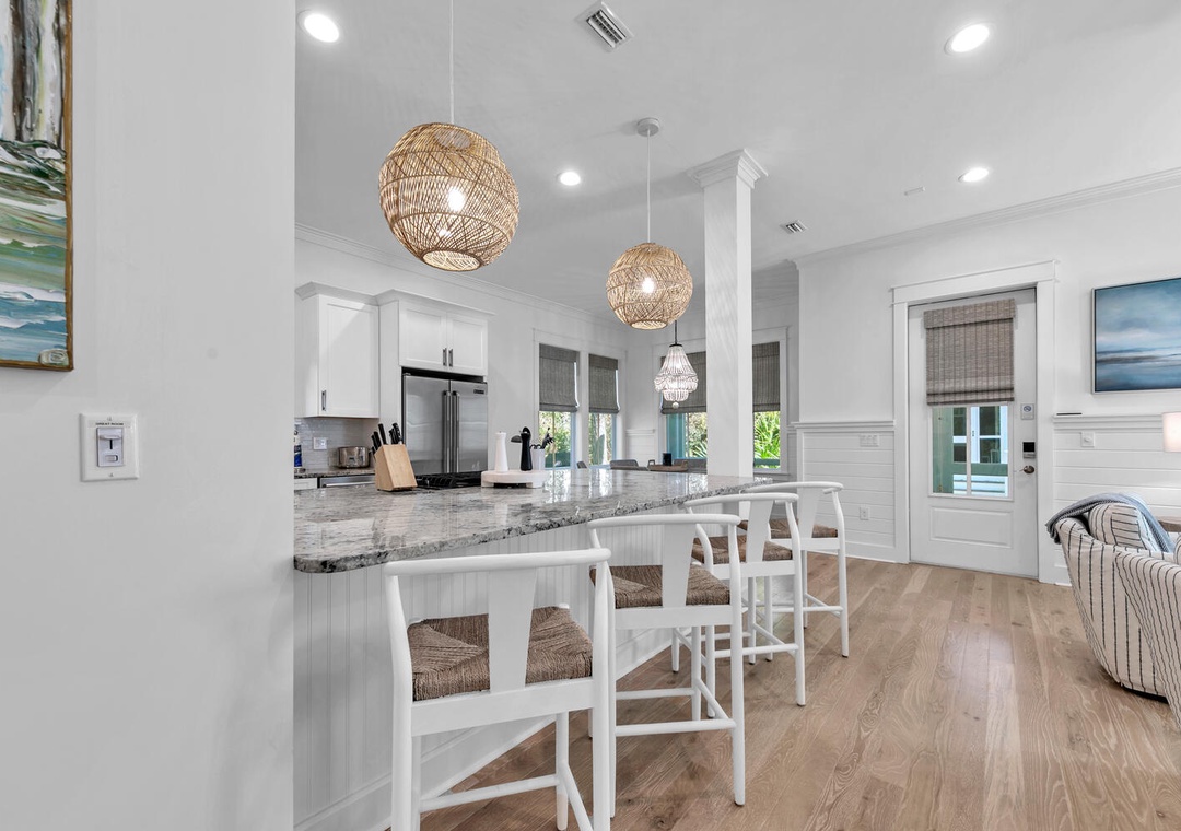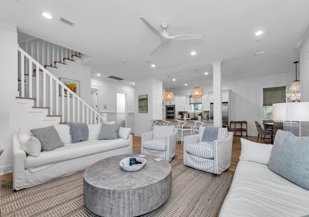 Welcome to Blue Moon a beautifully 4-bedroom 4.5-bath cottage tucked away in WaterSound West Beach and is a quick walk or short bike ride from the dazzling waters of the Gulf of Mexico. Enjoy your morning coffee on the screen porch taking in all the nature that surrounds you. The chef in the family will love this kitchen that has everything you need to cook up a delicious meal for everyone.