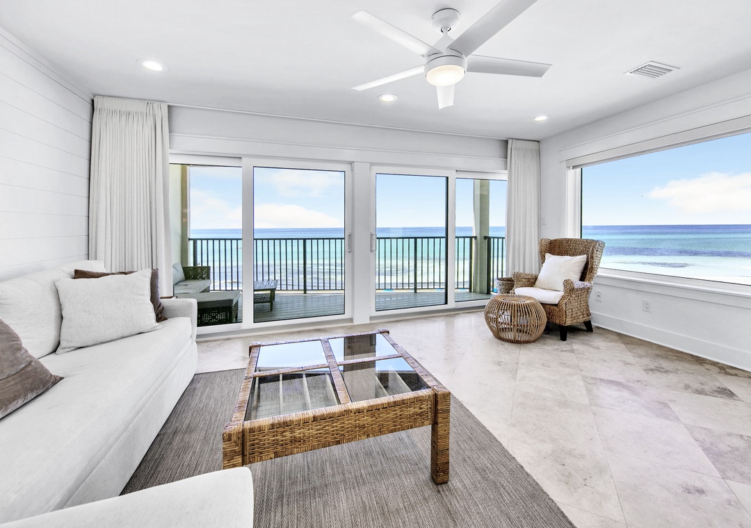 Welcome to the stunning Blue Mountain Beach Villas 5A — a beautifully updated beachfront condo tucked away in a private oasis along South Walton’s scenic 30A. Perched atop a sandy dune, this villa offers breathtaking views of the Gulf's jewel-toned waters. A private staircase from the lawn leads directly to the shoreline, making beach access quick and easy for fun-filled days by the water. Inside, the fully equipped kitchen has everything you need to prepare nice meals while taking in breathtaking views of the Gulf. Step out onto the balcony from the living room to sip your morning coffee as you watch the sunrise over the horizon. The spacious master suite features a king bed, its own private Gulf-front balcony, and an ensuite bathroom with a walk-in shower for ultimate comfort. The guest bedroom includes both a queen bed and twin-over-twin bunk beds, a sleeper sofa in the living room, allowing this townhome to sleep up to eight guests comfortably. Whether you're here for delicious local cuisine, sweet treats, boutique shopping, or outdoor adventures, Blue Mountain Beach Villas 5A is the perfect home base for your 30A getaway.
