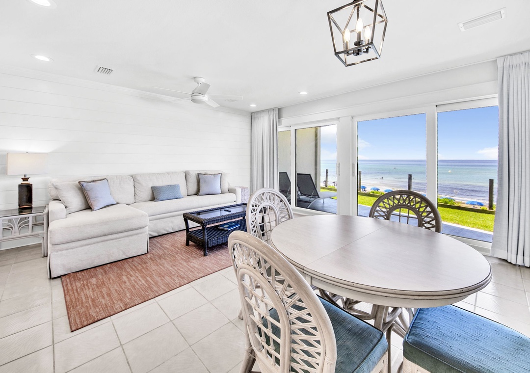 Welcome to Blue Mountain Beach Villas 5B — a beautiful and newly updated 1-bedroom, 1-bathroom condo that combines comfort, style, and unbeatable views. This inviting retreat features custom cabinetry, fresh paint throughout, and all-new furnishings, creating a relaxed, coastal vibe. Step out onto your private patio and find yourself just steps from the beach — perfect for morning coffee or sunset views. Inside, the well-equipped kitchen has everything you need to prepare a delicious meal while enjoying scenic Gulf views. The master bedroom offers a plush king bed, and the living room includes a queen sleeper sofa, comfortably accommodating up to four guests. In the evenings, take a leisurely ride on the provided bikes and explore the charm of 30A. Whether you're basking in the sun, discovering local gems, or simply relaxing in this cozy beachside haven, Blue Mountain Beach Villas 5B promises a vacation experience you'll want to return to year after year.