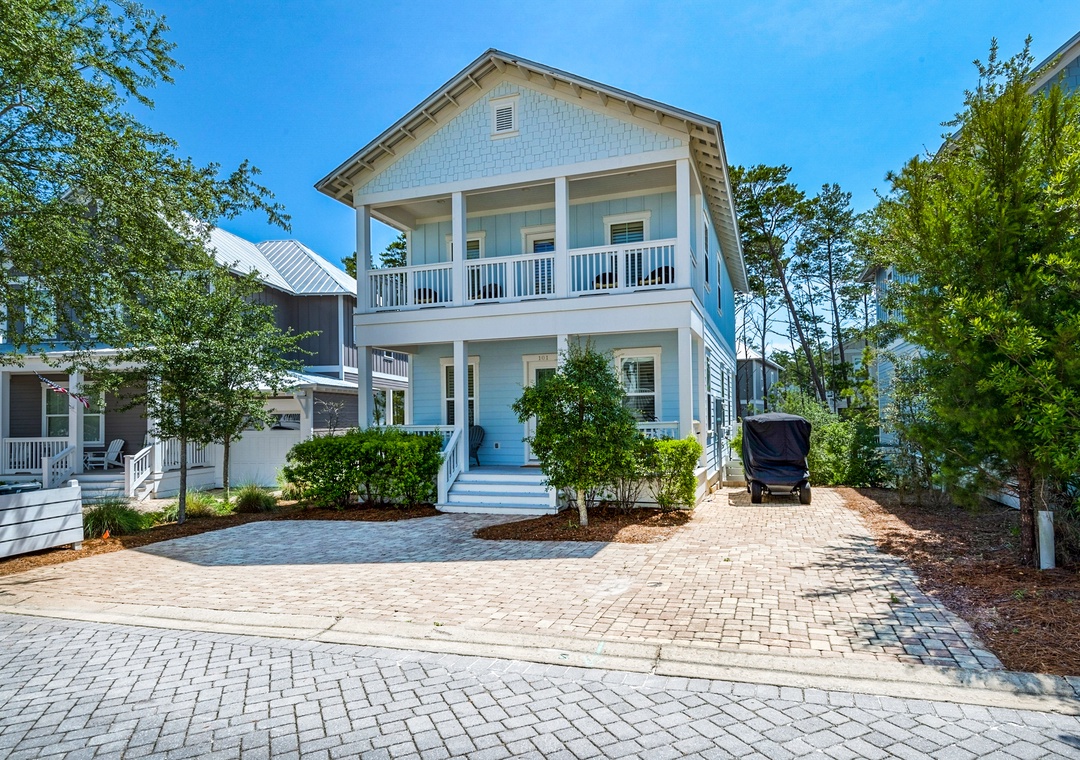Blue Mountain RNR is a luxury 3 bedroom, 2.5 bath home in the Highland Parks community of Blue Mountain Beach, just off Hwy 30A. Only minutes from the beach access, this stunning home features a bright, open floor plan with premium hardwood flooring, high-end finishes, spacious patios plus a balcony, and a chef’s kitchen with granite counters, a gas range, and a custom hood. This elegant home offers a king master bedroom that boasts a private balcony, and an ensuite bath with dual sinks and a spacious walk-in shower. Additionally, there’s a queen bedroom, a bedroom with 2 full beds, and a queen sleeper sofa in the living room. There are wall-mounted flat-screen TVs in all bedrooms and the living room. Relax outside on the shaded deck or ride the bikes down to the pool pavilion for the world-class pool, viewing tower, grilling, and entertainment! Have the vacation of a lifetime at Blue Mountain RNR!
