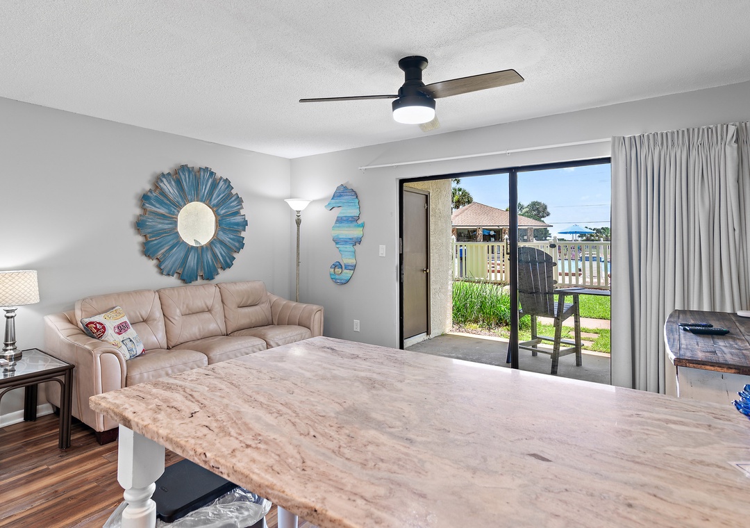 Unit was spotless, full kitchen, huge patio for coffee and sunsets. Loved that everything is walking distance, Pompano Joe’s right next door for happy hour, Bad Ass Coffee, Dairy Queen, Kenny D’s Cajun, and shopping all within a few blocks. On-site heated pool kept us entertained without ever needing the car.