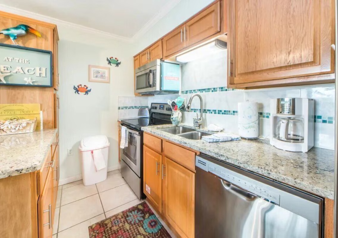 This 1BR/1BA Blue Surf condo has stunning Gulf Views right across from the Beach! Prep dinner in the fully equipped kitchen or enjoy a fresh cup of coffee on your private patio. Blue Surf 17A features tile flooring throughout, gorgeous furnishings, and granite counters, and stainless-steel appliances in the kitchen! With a king bed in the bedroom and a sleeper sofa in the living room, this convenient condo can sleep up to 4 guests comfortably. Walk right out your back patio to the pool or play a game of shuffleboard! Come have a vacation to remember at Blue Surf 17A!