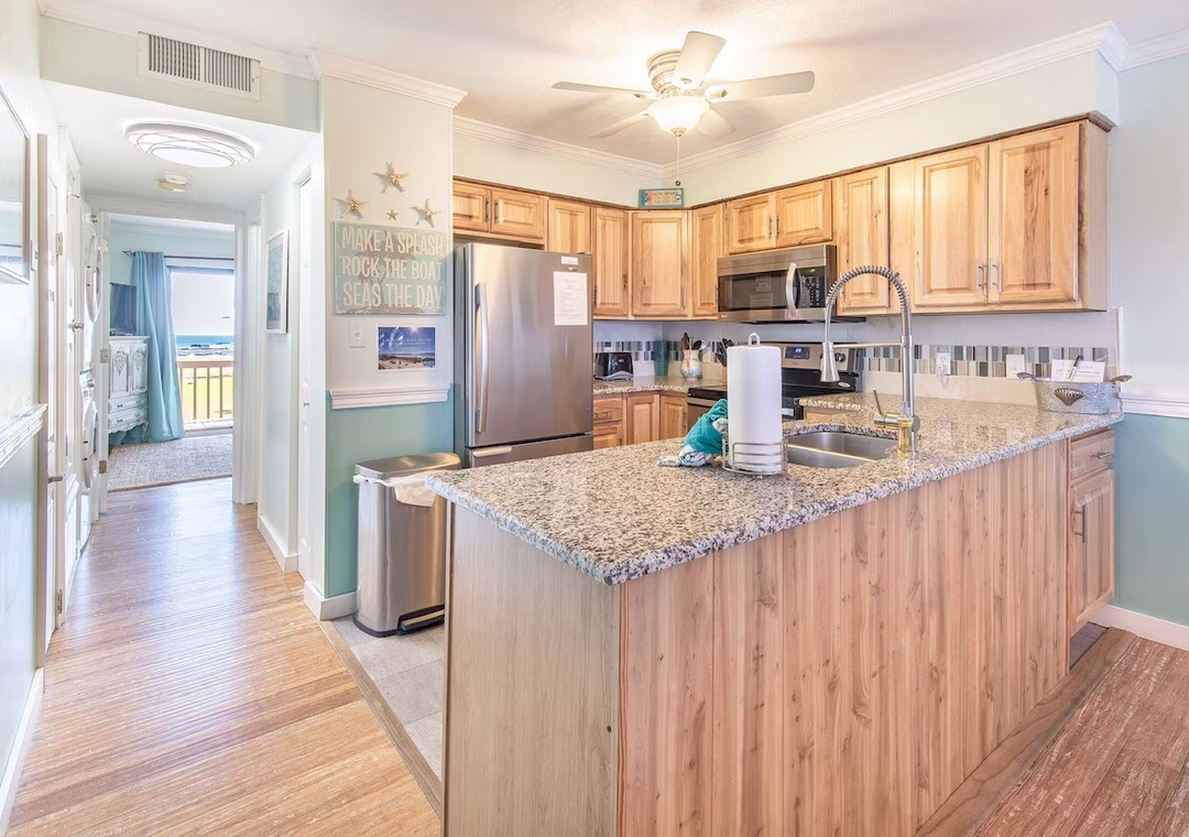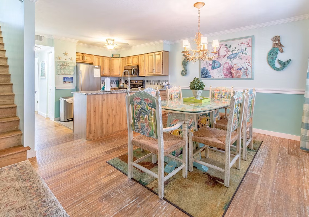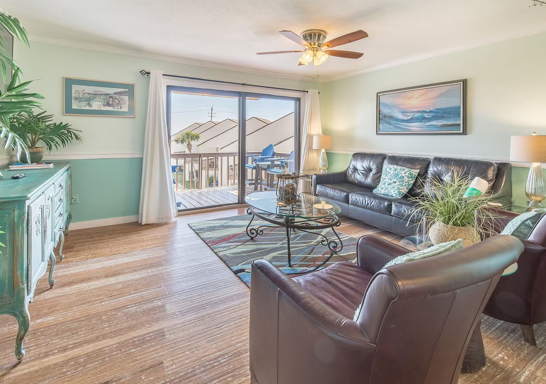 This beautifully updated, 2BR/2BA townhome has stunning Gulf Views from both balconies! Blue Surf 17B consists of the 2nd & 3rd floors, with the main 2nd-floor level hosting the fully equipped kitchen, dining room, and king master bedroom, and balcony. Upstairs features the living room, sleeper sofa, and guest bedroom with a king bed. Blue Surf 17B sleeps 6 guests comfortably. This townhome has hardwood flooring throughout, fabulous furnishings, flat screen TVs in every room, and stainless-steel appliances & granite counters in the kitchen. Enjoy the gorgeous Gulf Views, splash around in the community pool, or play a game of shuffleboard! Come have your vacation to remember at Blue Surf 17B!