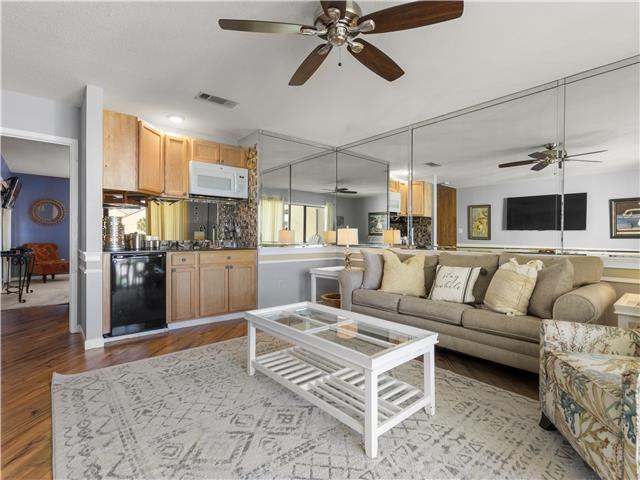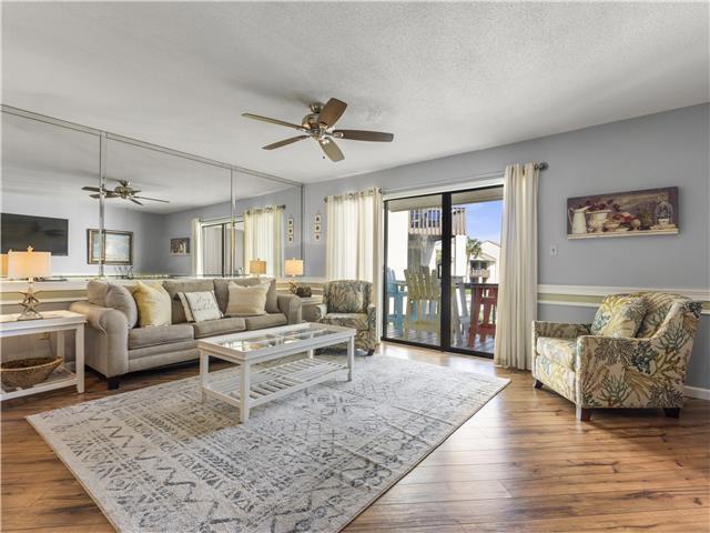 This 2BR/2BA pet friendly townhome has stunning Gulf Views from both balconies! Blue Surf 19 consists of the 2nd & 3rd floors, with the main 2nd-floor level hosting the fully equipped kitchen, dining room, king master bedroom, and balcony. Upstairs features the living room, sleeper sofa, and guest bedroom with a queen bed. Blue Surf 19 sleeps 6 guests comfortably. This townhome has hardwood and tile flooring throughout, fabulous furnishings, flat screen TVs in every room, and stainless-steel appliances & updated counters in the kitchen. Enjoy the gorgeous Gulf Views, splash around in the community pool, or play a game of shuffleboard! Come have your vacation to remember at Blue Surf 19!