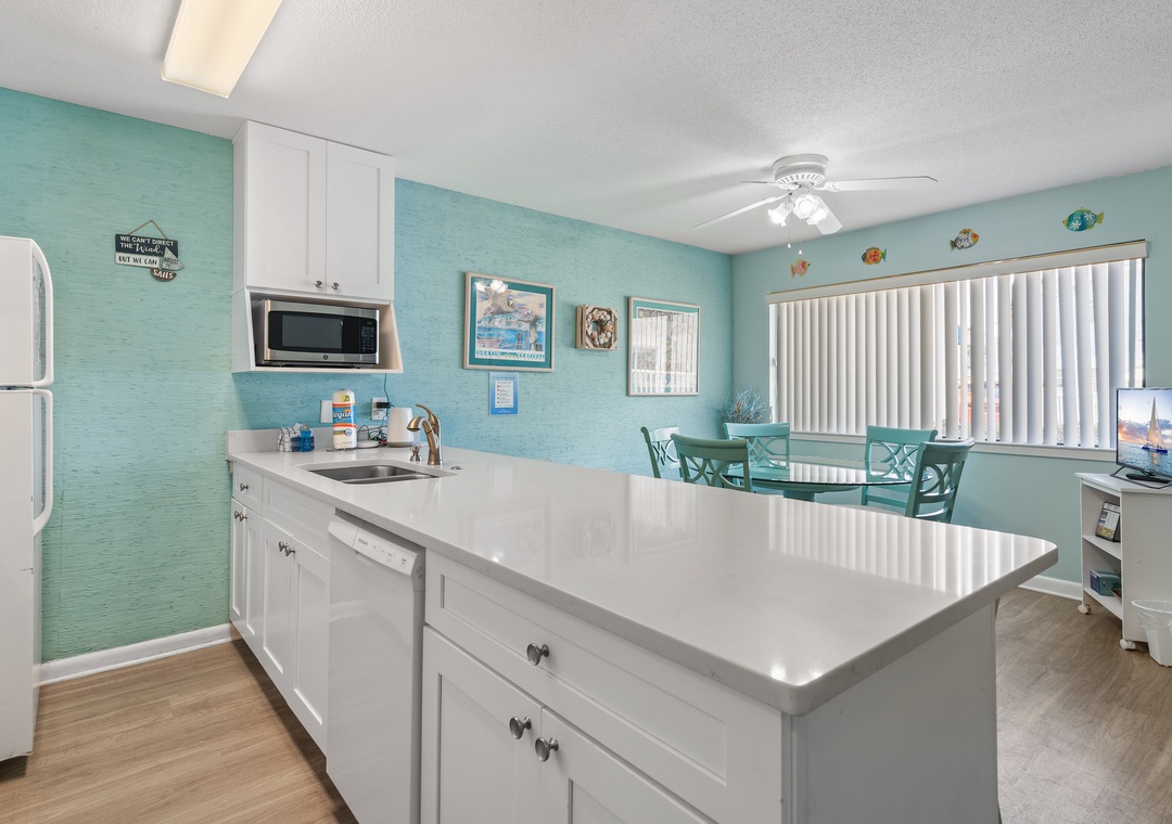 We stayed at Blue Surf #2 for our spring break week. This complex is amazing and our favorite place to stay. Clean, family friendly, gulf views, and easy access to the beach.Our stay at #2 was good, but there are a few things to be mentioned.The first night the dishwashers leaked and I called the rental agency and they sent a repairman right over. He wasn’t able to fix it because a part needed to be ordered. No worries, doing dishes by hand is not a big deal.The TV in the family room was extremely small and we were not able to use our Netflix, Hulu or Amazon. Disappointed in that with the NCAA tournament playing. We decided to rent movies and then discovered there were no batteries in any of the remotes.The unit was clean, plenty of towels and linens and really appreciated having our own washer and dryer.Also adding the beach service would be a big plus.I would stay in this unit again, but does need some updating.It’s location is on scenic 98, close to restaurants, bars, shops etc.Really love Blue Surf!- Reviewed On: 4/9/2022