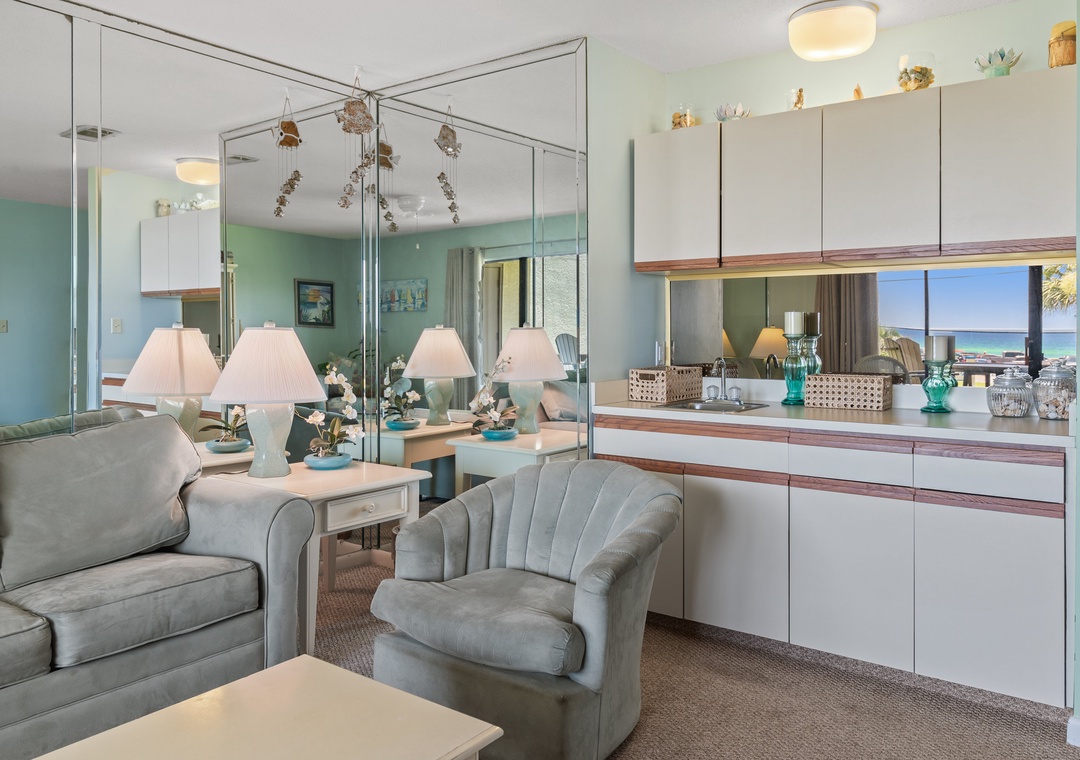 The condo is in the PERFECT location. Mornings were spent on the top deck looking at the beautiful water, days were spent a few steps away at the white powder beach. The condo is roomy, we hosted dinner for friends in the area and it was like being at home. The AC worked great keeping the place cool. The sliding doors are tough to get open, and the shower sliding glass door fell off track. Minor issues. Overall we had a great stay, and I'll be booking next year at the same place!- Reviewed On: 6/20/2022