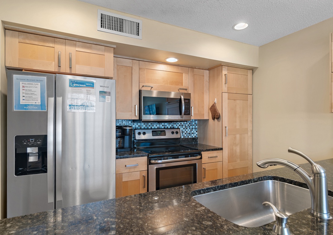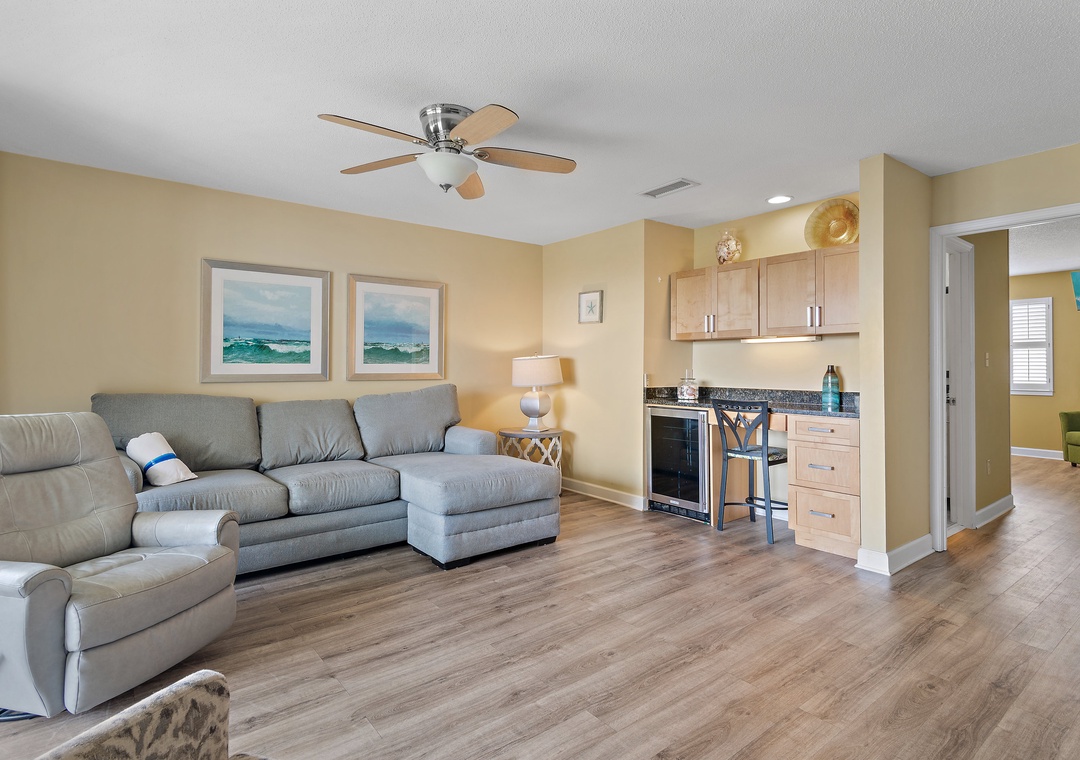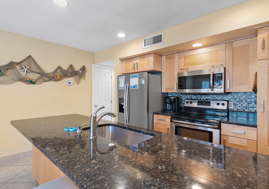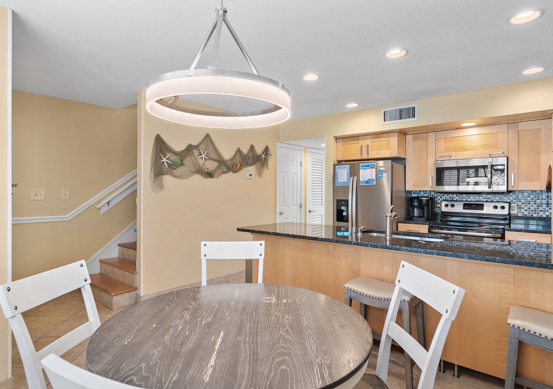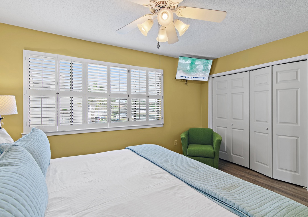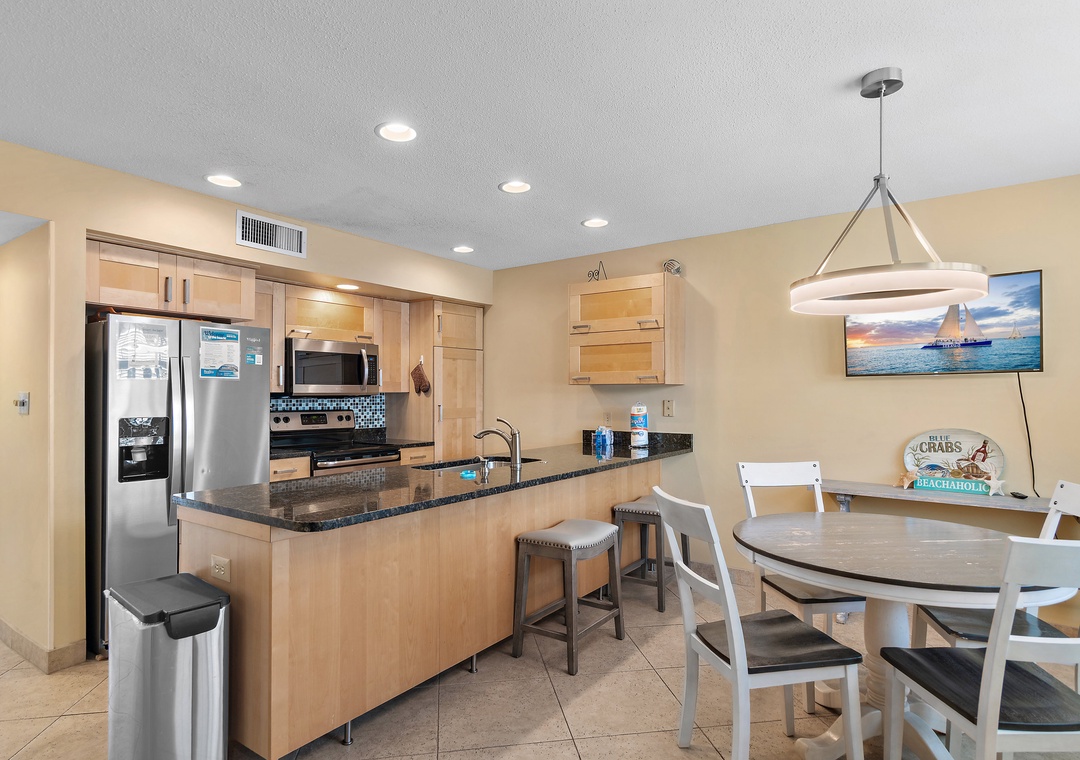 This beautifully updated, 2BR/2BA townhome has stunning Gulf Views from both balconies! Our 2-bedroom, 2-bath, Blue Surf 6 has been completely remodeled: new kitchen with granite counter tops, birch cabinetry, and stainless steel appliances; new tile and granite baths--one with double sinks; flat screen TVs in the kitchen, both bedrooms, and a 52" in the living room. Blue Surf 6 sleeps 6 guests comfortably. Enjoy the gorgeous Gulf Views, splash around in the community pool, or play a game of shuffleboard! Come have your vacation to remember at Blue Surf 6.