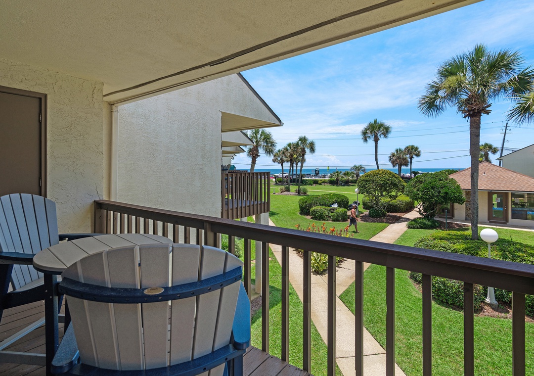This beautifully updated, 2BR/2BA townhome has stunning Gulf Views from both balconies! Our 2-bedroom, 2-bath Unit 7 Blue Surf Townhome in Destin, Florida has been completely remodeled: freshly painting in 2021, new kitchen with granite, birch cabinetry, stainless steel appliances, and dining furniture; new flat screen TVs in kitchen, both bedrooms and the living room, tile and granite baths--one with walk-in shower, the other with double vanity--new furnishings and decor throughout. Blue Surf 7 sleeps 6 guests comfortably. Enjoy the gorgeous Gulf Views, splash around in the community pool, or play a game of shuffleboard! Come have your vacation to remember at Blue Surf 7.