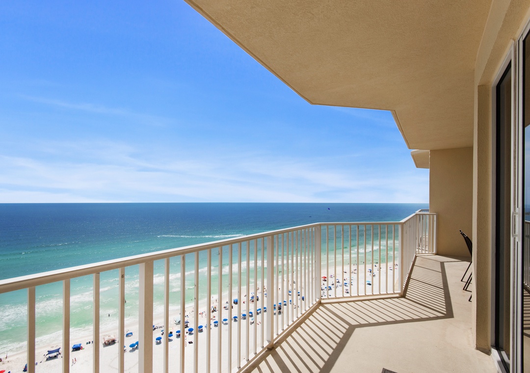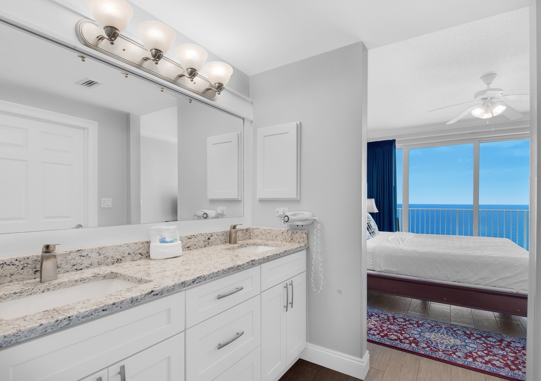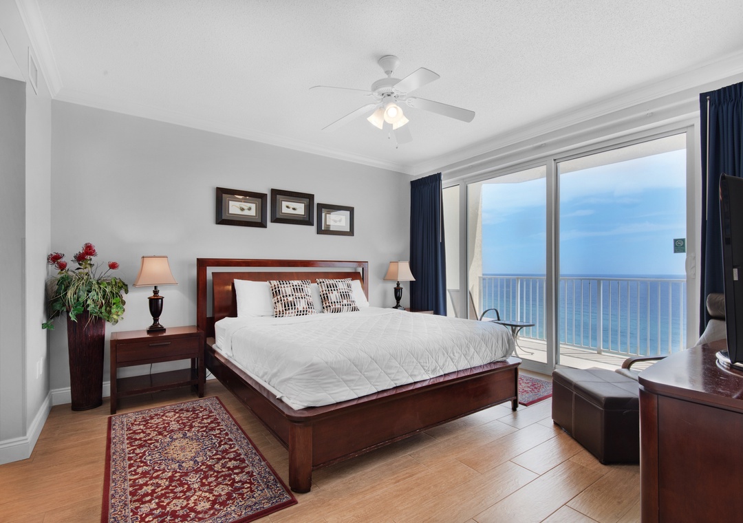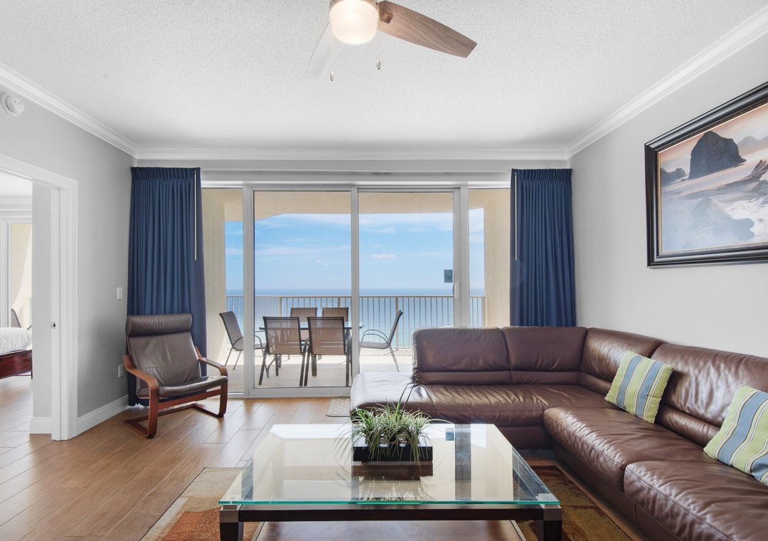 Escape to Boardwalk Beach Resort and enjoy the spectacular views from your private balcony, living room, kitchen, and master bedroom! Boardwalk 1801 is a beautiful 3 bedroom, 2 bath condo that features an open kitchen with gorgeous granite countertops, updated flooring, and a comfortable living area with a large flat-screen TV. You may want to spend all your time out on the balcony taking in the panoramic views! The spacious master bedroom is Gulf Front with stunning wall-to-wall views and has a king bed and Ensuite bathroom with a garden tub and separate walk-in shower. There’s also a guest room with a queen bed with Ensuite bathroom. The last guest room features a twin-over-twin bunk and a futon in the living room, sleeping up to 8 guests. Whether you’re soaking up the Gulf Views, catching the sun on the beach, or taking a dip in the beachside pool, Boardwalk 1801 is the perfect spot for your next Panama City Beach vacation!