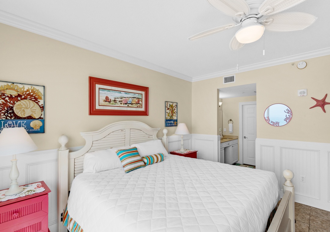 Escape to Boardwalk Beach Resort and enjoy the million-dollar views from your private balcony, living room, kitchen, and master bedroom! Boardwalk 508 features an open kitchen with granite countertops, tile flooring throughout, and a comfortable living area. Enjoy having breakfast on your private balcony taking in the speculator views. The spacious master bedroom is Gulf Front with stunning wall-to-wall views and has a king bed and ensuite with a garden tub and separate walk-in shower. There’s also a guest room with a queen bed, a bunk room with twin bunks, and a sleeper sofa in the living room. The condo can comfortably sleep up to 8 guests. The living room has a smart TV, perfect for enjoying your favorite movie after a full day at the beach. Whether you’re soaking up the spectacular views, catching the sun on the beach, or taking a dip in the beachside pool, Boardwalk 508 is the perfect place for your next Panama City Beach vacation!