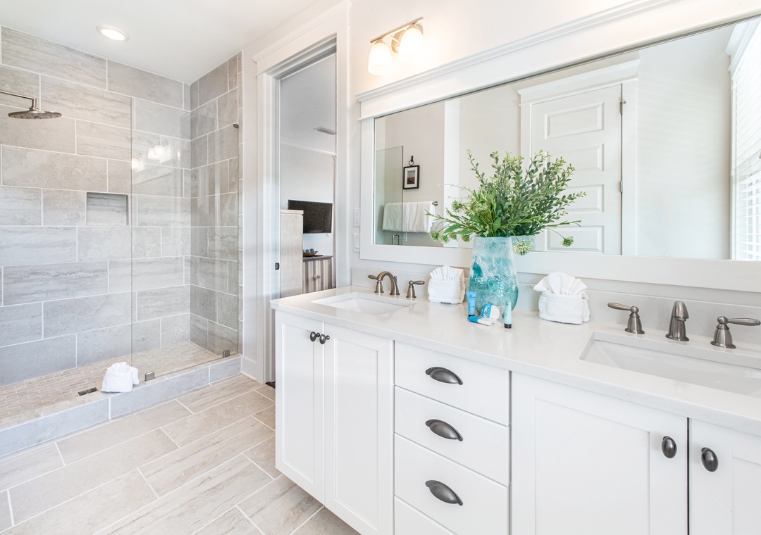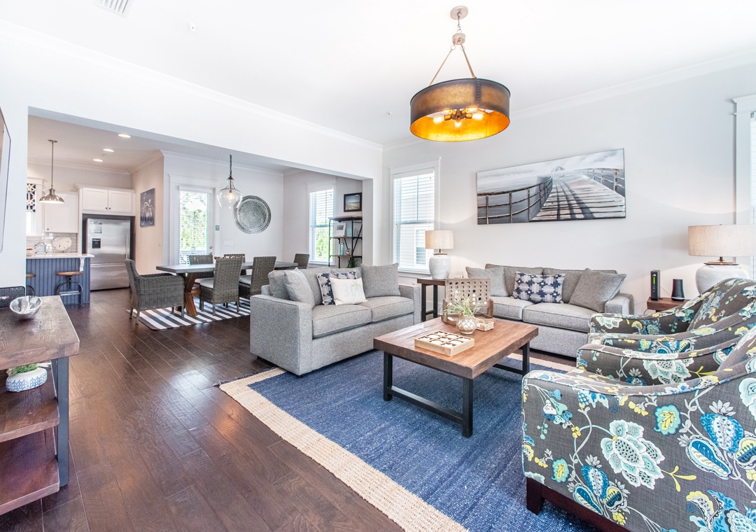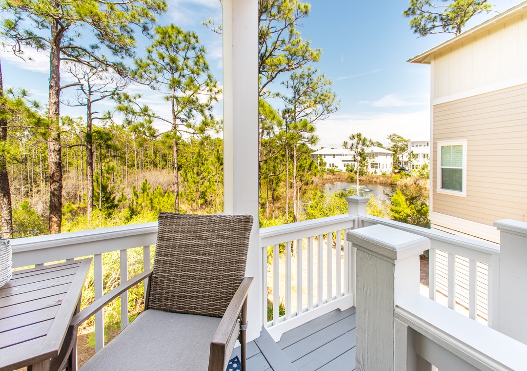 Brown Eyed Girls is a luxury 3 bedroom, 2.5 bath home in the Highland Parks community of Blue Mountain Beach, just off Hwy 30A. Only minutes from the beach access, this stunning home features a bright, open floor plan with premium hardwood flooring, spacious patios plus a balcony, and a chef’s kitchen with quartz counters, gas range, and custom hood. This house offers a king master bedroom that boasts a private balcony and en suite bath, with dual sinks and a spacious walk in shower with a rain shower head. Additionally, there’s a queen bedroom and a bedroom with twin over full bunks. There are wall-mounted flat screen TVs in all bedrooms, the living room, and even on the back porch. Relax outside on the shaded deck overlooking the quiet pond or stroll down to the pool pavilion for the world-class pool, viewing tower, grilling and entertainment! Then cool off with a stop at the Blue Mountain Beach Creamery. Have the vacation of a lifetime at Brown Eyed Girls!