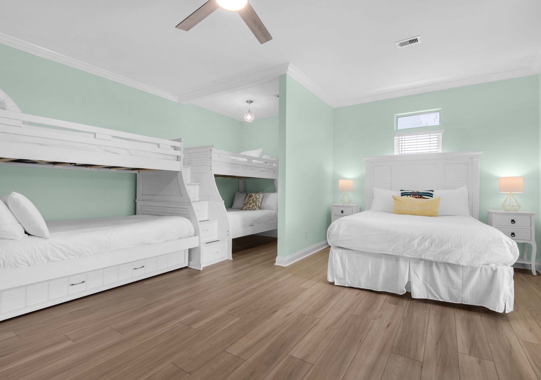 3rd Guest Room: Queen bed, Twin over Full, Twin over Full over Trundle.