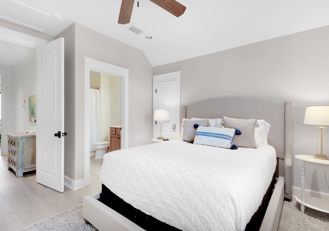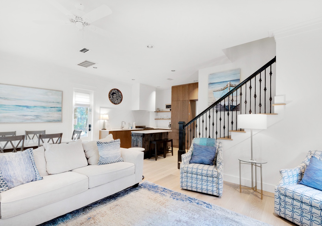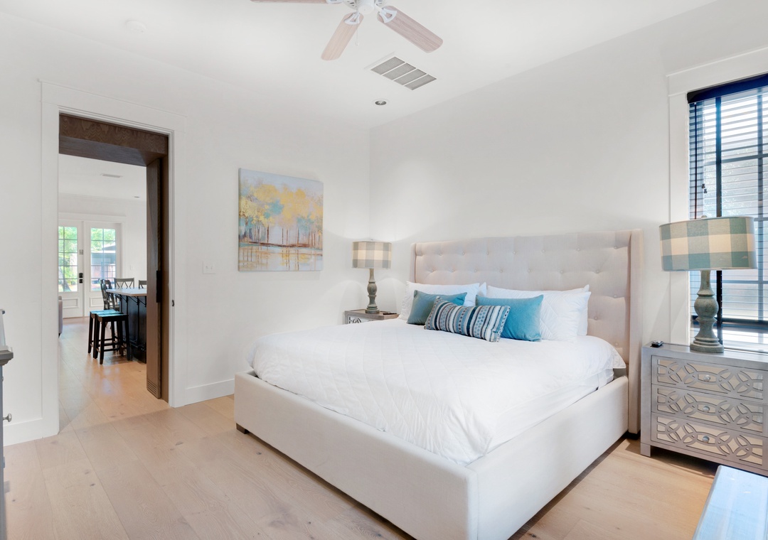 Welcome to Bungalo at Baytowne, a charming, beautifully decorated 3 bedroom, 3 bath, two-story cottage in the Bungalos at Sandestin Golf and Beach Resort. You will fall in love from the moment you step through the door of this home into the open concept kitchen, living, and dining area. Enjoy the private screened-in porch that can be accessed from the living room. This cottage has recently been remodeled with a new Scandanavian style chef's kitchen featuring top-of-the-line appliances, stained oak hardwood custom cabinets, Silestone quartz countertops with a full quartz slab backsplash, and stunning open shelving. There are new 9' wide plank French oak hardwood floors throughout the house. The first-floor king master bedroom features an ensuite bathroom with a custom walk-in closet. Head upstairs to the second floor to find 2 guest bedrooms. One is an elegant bedroom with 3 side by side twin beds, and the other is a queen bedroom with an ensuite bathroom. Enjoy the quiet peacefulness of early mornings as you sit on the spacious and private screened-in deck where you can also spend time relaxing, reading, or sipping on your favorite beverage. Come make lasting vacation memories at Bungalo at Baytowne.