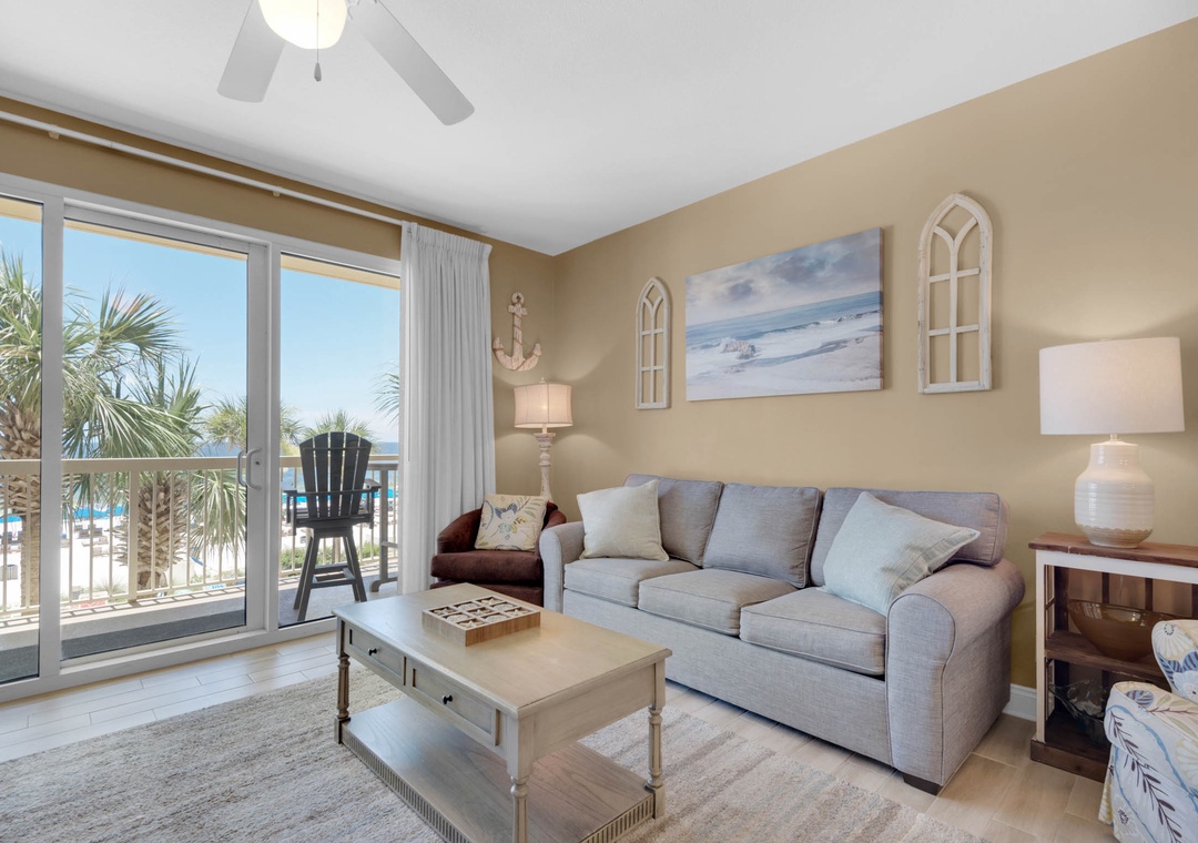Calypso 1-203 East is a gorgeous 1BR, 2BA condo filled with beautiful furnishings. This BEACH FRONT condo is in the perfect spot right beside Pier Park, so you can enjoy a vacation that is as relaxing or exciting as you want! With a king bed in the master, twin bunks in the hall, and a queen sleeper sofa in the living room, this lovely Panama City Beach condo sleeps up to 6 guests comfortably! Wake up with morning coffee on the Gulf Front balcony, with spectacular views of sugar white sands and emerald waters. Make your next vacation one to remember at Calypso 1-203 East!