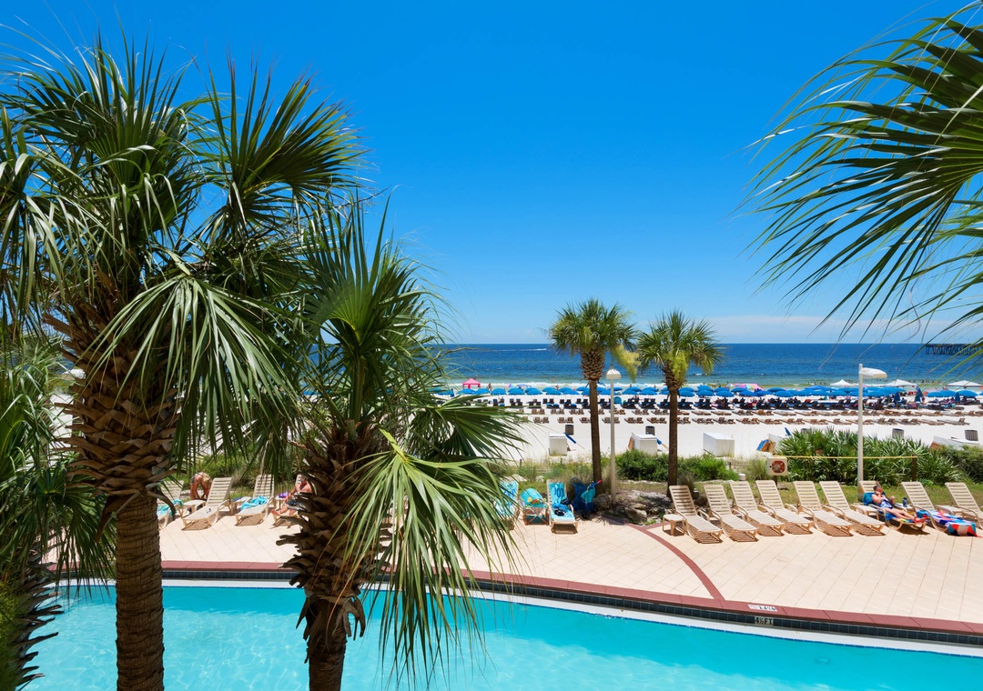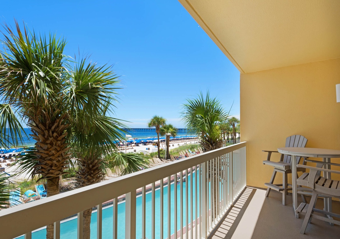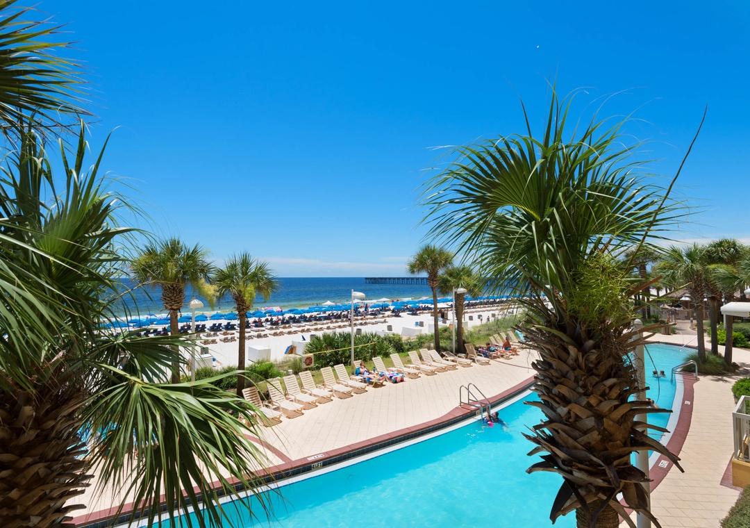 In the heart of Panama City Beach, Calypso Resort features TWO beachfront 23-story towers. The resort includes 2 large beachfront pools(seasonally heated), surrounded by a patio studded with palm trees, chaises, and tables where you can enjoy a snack or a game of cards while listening to the surf lap onto the sugar-white sands. There’s even a tiki bar in season, so you can enjoy a piña colada after your swim. And if swimming, kayaking, paddle boarding, canoeing, or windsurfing in the Gulf isn’t enough exercise for you, the complex also has a fitness center!