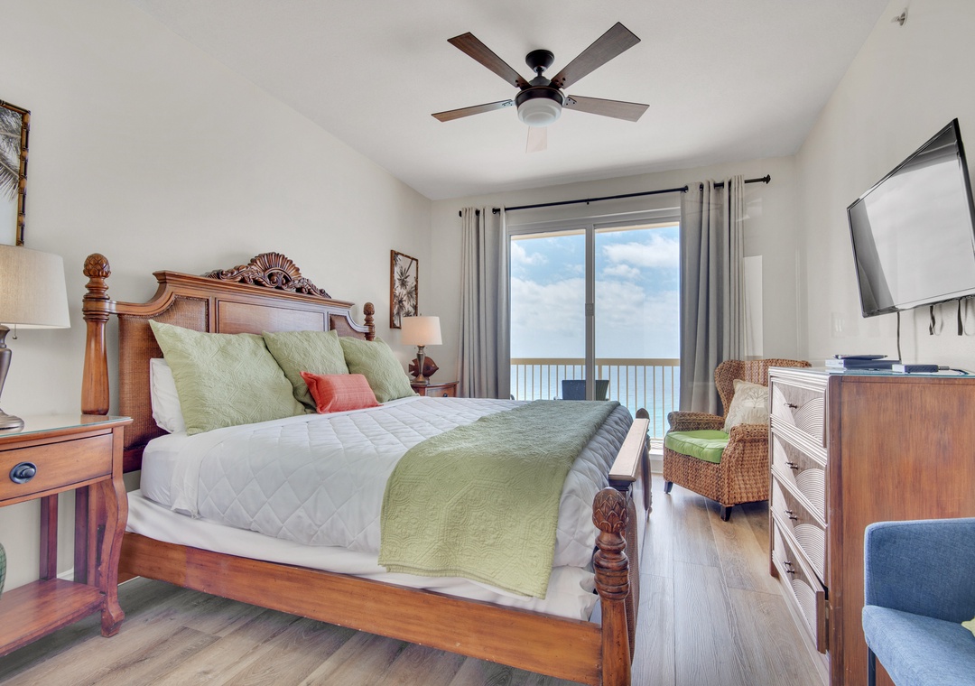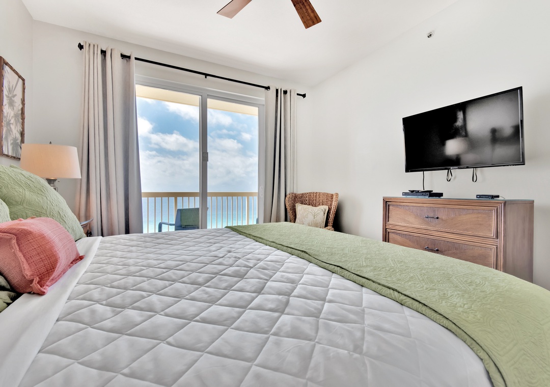 Calypso 2-1502W is a gorgeous 3BR/2BA condo, beautifully decorated with coastal decor and lovely furnishings! You’ll be in the perfect location right beside Pier Park, so you can enjoy a vacation that is as relaxing or exciting as you want! This GULF FRONT condo boasts granite counter tops in the kitchen, updated flooring throughout, and a washer/dryer for your convenience. Also, HBO is included in the TV cable package! With a king bed in the master, a king bed in the first guest room, and a queen bed in the second guest room. This beachfront condo sleeps 6 guests comfortably. Have your morning coffee on the Gulf Front balcony with endless views of sugar white sands and emerald waters!
