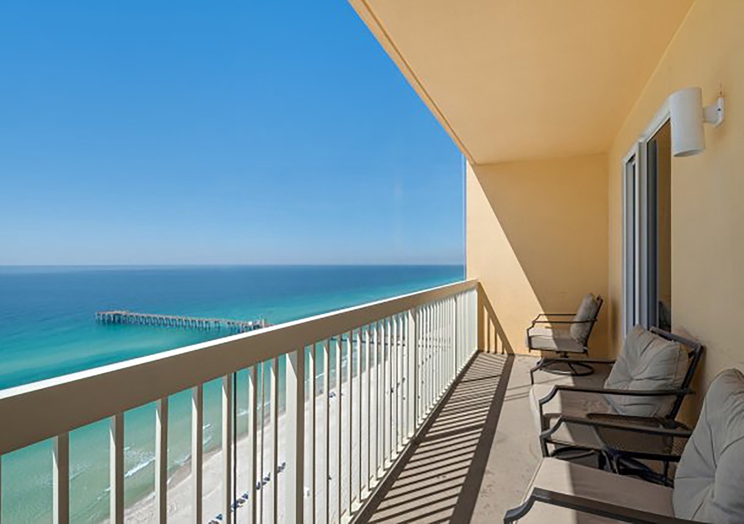 In the heart of Panama City Beach, Calypso Resort features TWO beachfront 23-story towers. The resort includes 2 large beachfront pools (seasonally heated), surrounded by a patio studded with palm trees, chaises, and tables where you can enjoy a snack or a game of cards while listening to the surf lap onto the sugar-white sands. There’s even a tiki bar in season, so you can enjoy a piña colada after your swim. And if swimming, kayaking, paddle boarding, canoeing, or windsurfing in the Gulf isn’t enough exercise for you, the complex also has a fitness center!